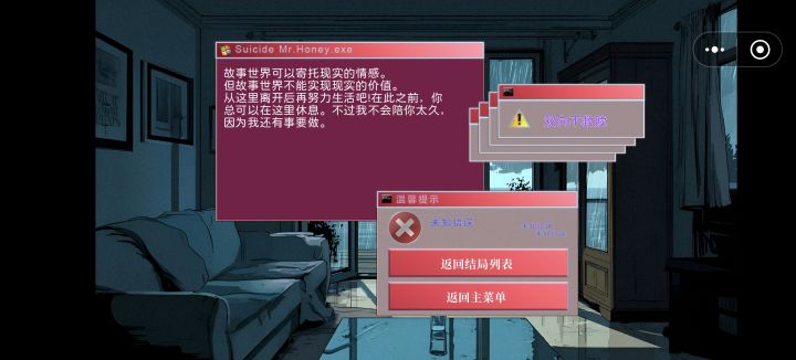 刚玩不懂打完一个解锁结局后,点了之后选项是继续进行下一个我以为要重开谁知道可以连续收集结局。有点不好的一点是我其他结局解锁过了要过前置才行,搞半天找攻略才解锁。