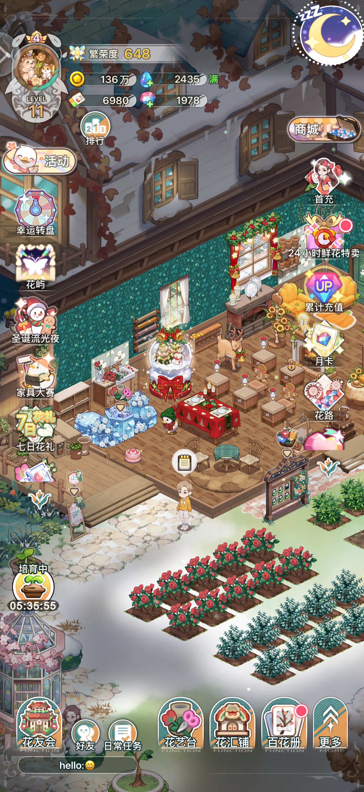 游戏画面精美、玩法丰富,融合了种花养成、花店经营、插花DIY、小屋装修等多种玩法。玩家可以种植上百种鲜花,根据顾客订单搭配花束,还能自由装饰花店和小屋,满足了不同玩家的兴趣需求。增加了游戏的趣味性和吸引力。