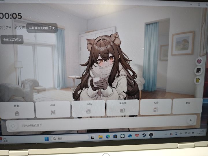 接下来就是喜闻乐见的BUG反馈部分啦(还有许愿),妹居的登录系统很不稳定,经常容易出现登录不上的情况,且云存档基本上没有用,大部分时间需要手动保存json存档文件,而且手动保存的存档并不包括已经购买的服装,礼物等,金币也会归零。聊天系统不稳定,会出现日记无法保存等情况,且存在所有ai都存在的问题:幻觉(虽然缓解了许多,但是真的很出戏啊喂,这些东西都可以进一步优化,但老大估计忙不过来了),还有就是,每一次的聊天都是妹妹先开口,很大程度上限制了对话场景,以及yuki在桌面模式下互动的内容,点入聊天后,这段互动内容就消失了,无法接着互动的内容聊天。好感度与信任值的阶段区分不明显,(好感70以上没有任何区别,30开始加的好感就像坐火箭那样容易)一定程度上影响了与妹妹从相遇到初识,再到熟悉的过程。