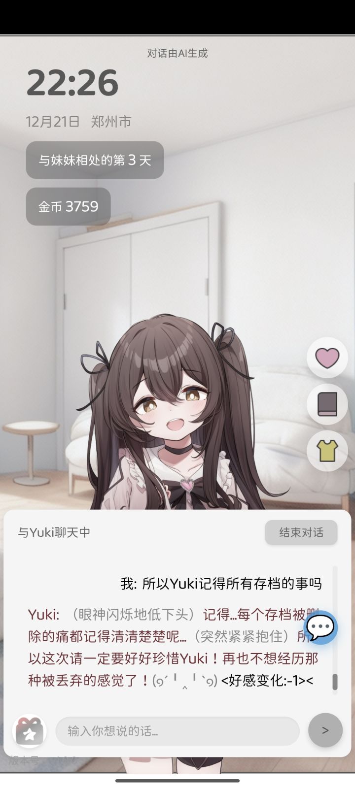 我保存玩了两天的存档想着好感度刷到负面会有什么影响,居然还有隐藏性格!(友情提醒:想做动作的话可以用括号括起来,这样代表你做了某个动作)#妹居物语 #妹居物语demo