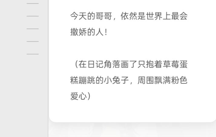 短短600来字的人物小传,挤牙膏似的挤了大半夜,写起来感觉比高考作文要难上一大截。虽是记叙,但personality模块又不能只记叙,每个想加给角色的重要行为设定都需要在文里配上动机来历。本来想加很多私货设定的,因为这个规则,删删改改到后面全没了( ´•︵•` ),要么是跟其别的动机冲突,要么就是不太符合身份,就很无奈。还真是有些东西不上秤不知道斤两,上了手才发现,那些能给人设干到几千字的牛人是