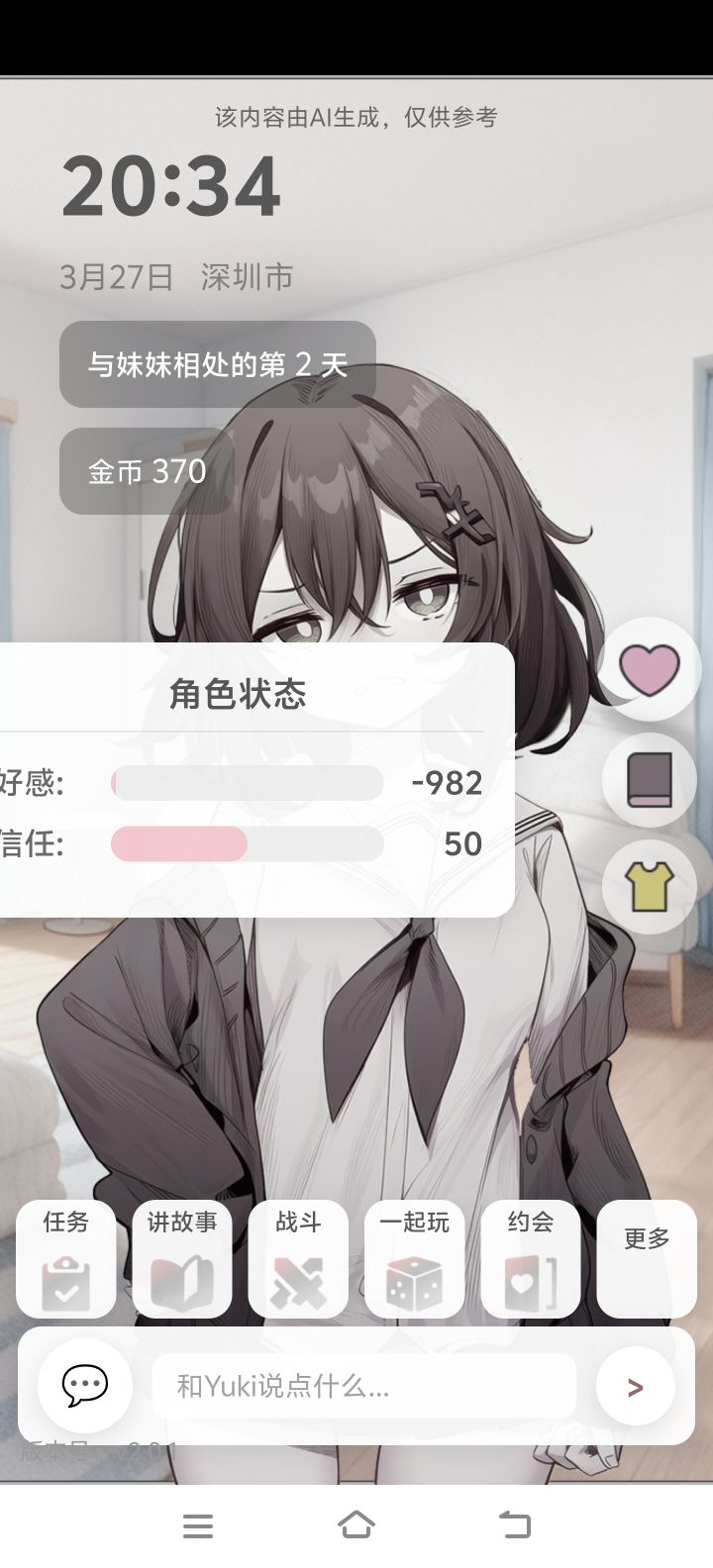 【二测打卡】《妹居》二测期间7日打卡活动,与Yuki的7日约定《妹居》二测期间,抖音7日发作品打卡活动!一起来完成跟Yuki的7日约定吧!有任何关于《妹居》的问题,欢迎到妹居QQ频道留言#妹居 #妹居物语 #AI聊天 #AI陪伴 #游戏测试 #打卡