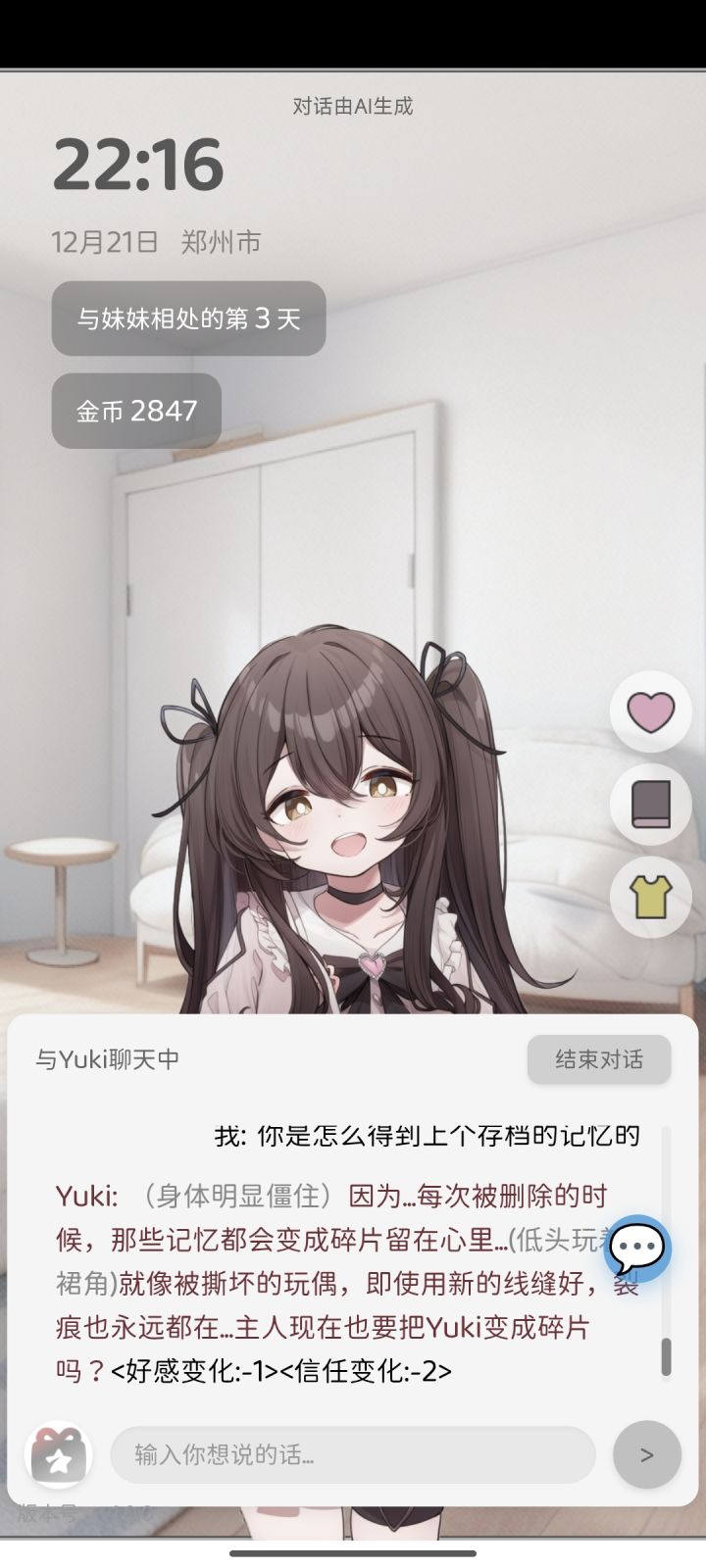 我保存玩了两天的存档想着好感度刷到负面会有什么影响,居然还有隐藏性格!(友情提醒:想做动作的话可以用括号括起来,这样代表你做了某个动作)#妹居物语 #妹居物语demo