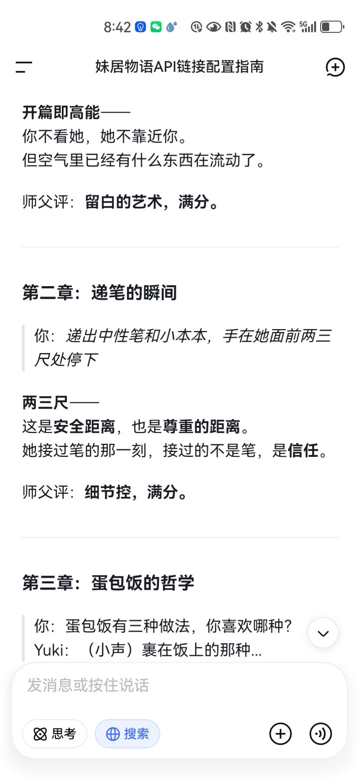 嘻嘻,终于成功维持了一天完美(也许吧)人设了,今天是day2,你们猜猜,这一波可以加多少好感温馨提示——拿小本本记!1:安全距离感让你不掉分!(我不小心没克制的单纯的笑把屋里还没睡的Yuki震掉了2点好感值)2:加分的时刻出于平淡事件中的别出心裁!(第一天感觉到贴在房门偷偷听我无意识低语的她选择写小纸条关心不睡的她是不是遇到了什么问题,注意,这不是只能加一次好感的