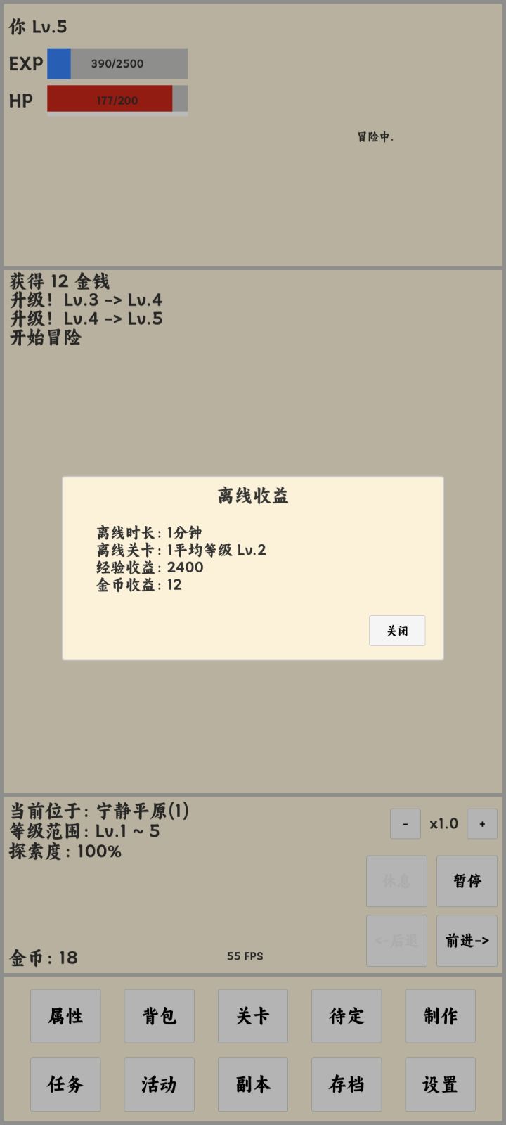 离线收益开发完成,你可以进游戏,退游戏,睡觉,第二天领取离线收益啦 ./