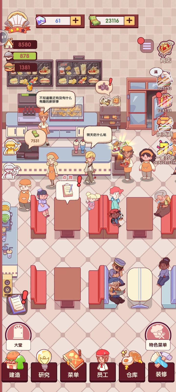非常的莫名其妙 ,我再次上线之后 我之前的存档就没有了 ,我今天下午上线的时候 明明就是已经 把第二个餐区解锁了 ,绿植也解锁了,但是我 到了晚上上线的时候又显示说我没有解锁过 ,我感觉不对 玩了一会儿之后,我又下线重新上线之后,发现说我东西又要重新来 ,这是要干嘛 要手动存档吗