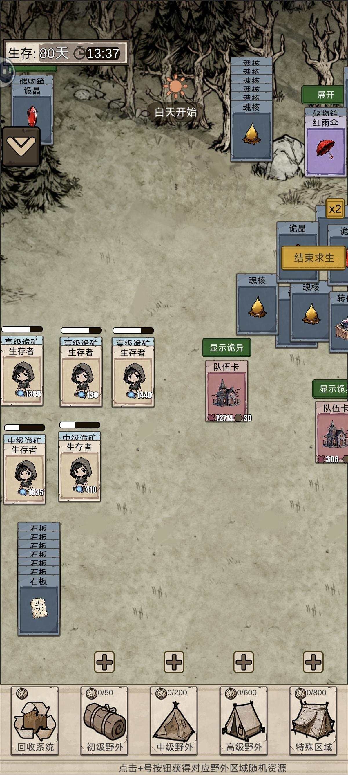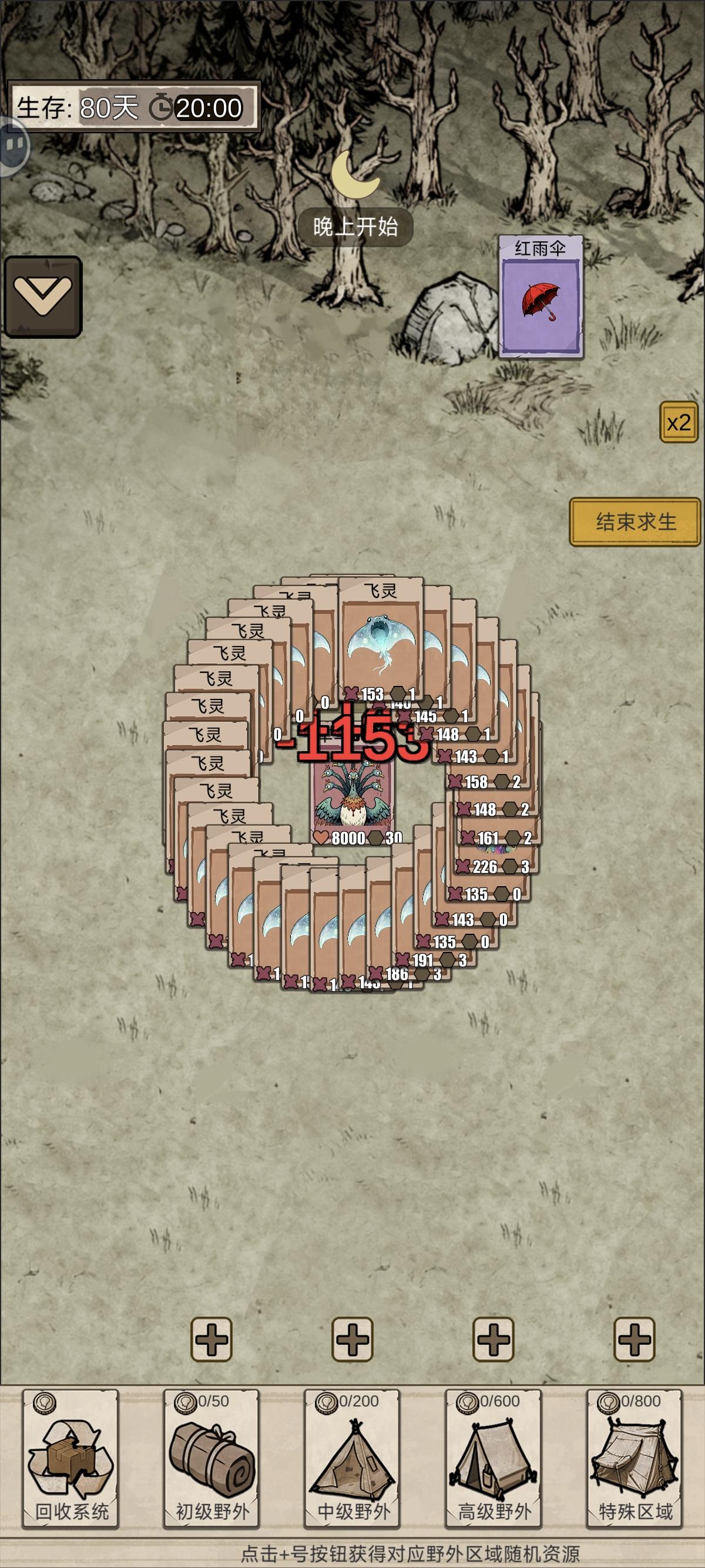 只是我个人小心得,大佬勿喷。后期飞灵真的无敌好用,七千➕的伤害,不到二十的占用格子。前期有两三个阿布就够用了,然后堆木灵第一个十天完全能打过,把诡晶留着存到中级野外。中级有多足壶➕龙虫就完全可以,堆十个也才30格,二十天也能打过。诡晶留着高级就一直找飞灵,后期特殊的都不咋需要找。小bug诡晶可以暂停堆叠在很多人身上。