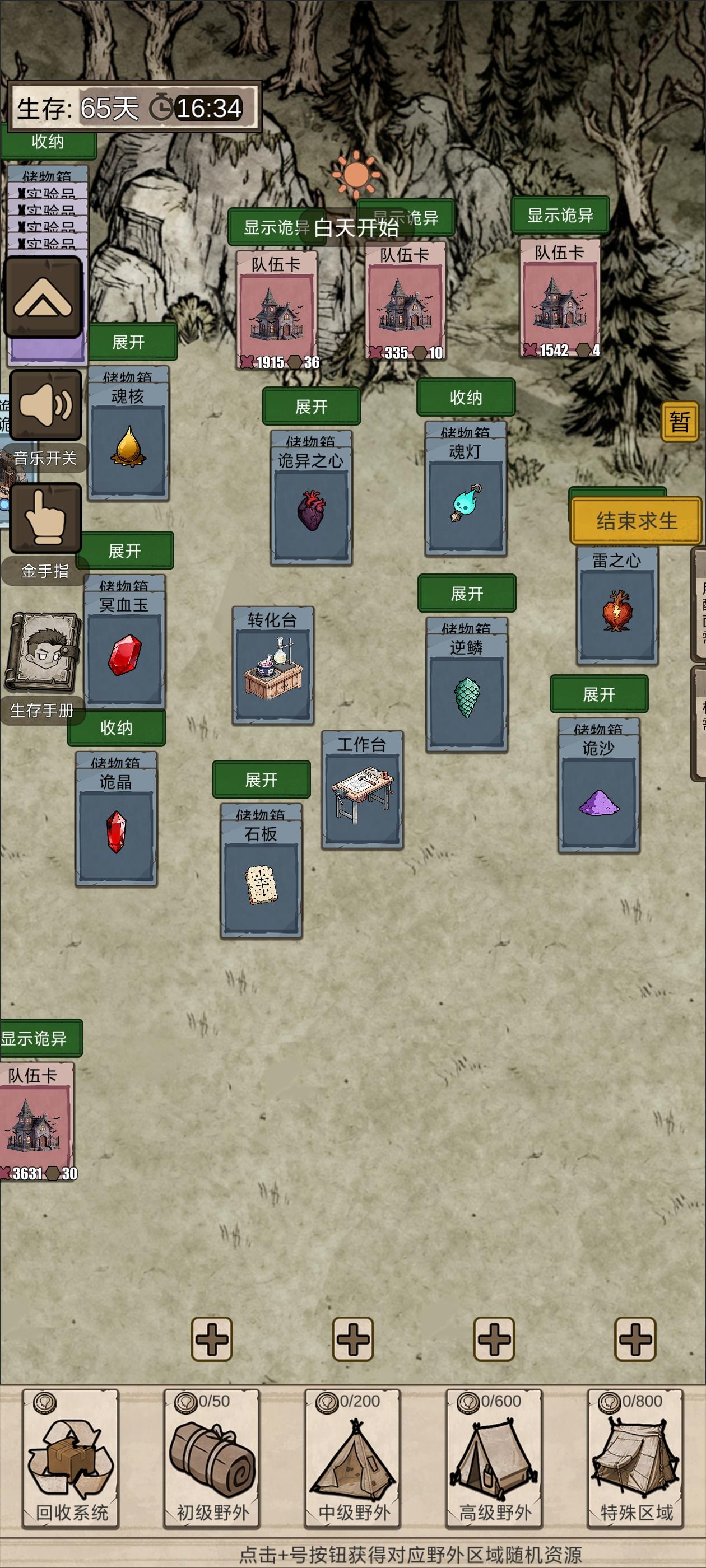 一.诡矿太占位置了二.诡晶根本就不够,刷初级野外真的刷爆了三.储物箱一个感觉不太够四.图感觉还可以再扩大一下有一次拖诡怪的时候直接回收了,二三十张直接没了。真的已经摆烂了。