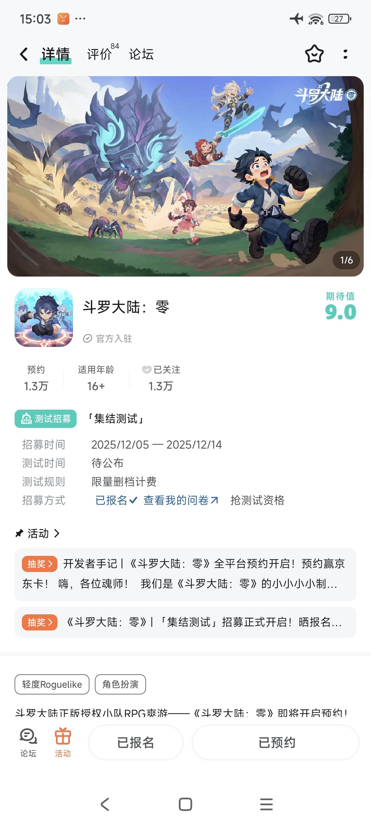 各位亲爱的魂师们:《斗罗大陆:零》「集结测试」已于2025年12月16日10:00正式开启!已经获得测试资格的魂师快快通过资格短信/TapTap站内信/好游快爆站内信下载游戏,开启冒险!在本次测试版本中,魂师们可以提前体验多种玩法内容,体验成神快乐!本次测试,小舞还特意准备了一个「小舞信箱」!如果魂师们在本次测试中遇到任何BUG、有意见或反馈,都可以在本贴评论区告知小舞,一定要告诉小舞哦!