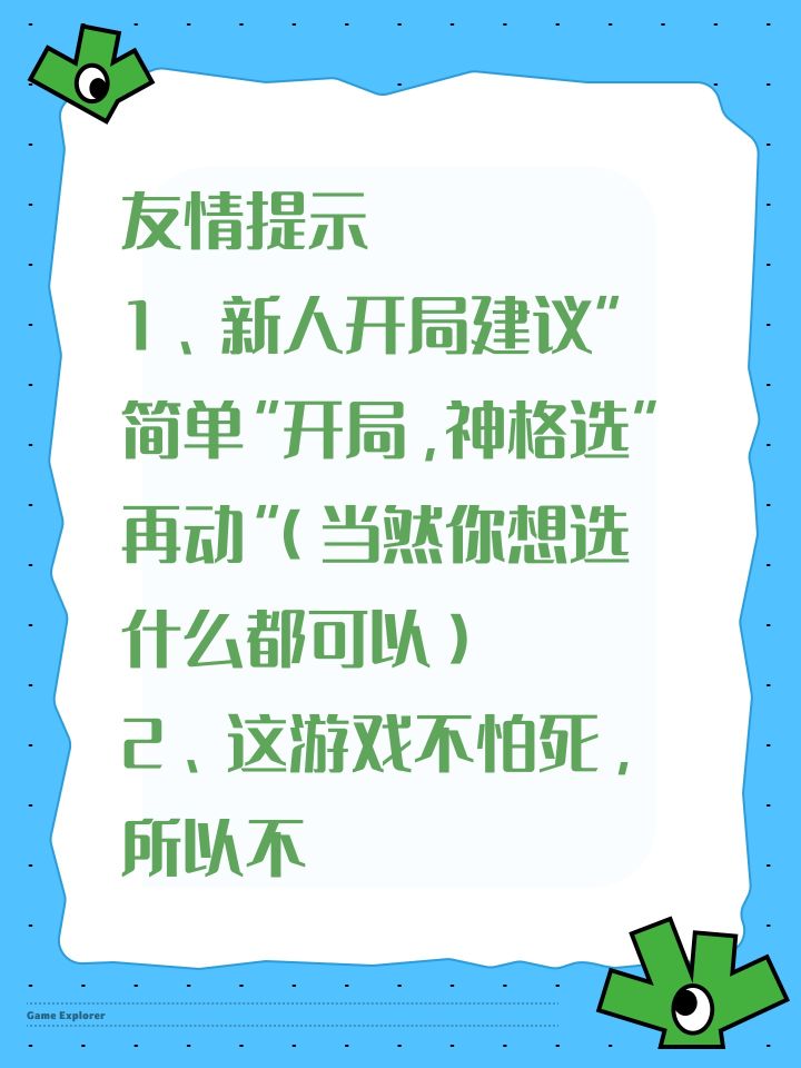 建议开局选择普通模式,困难太折磨人了,简单模式减爆率,进入游戏选择被动,建议终伤或者再动开局,出门先去营地刷老鼠和蜜蜂刷几件新手装备,等级差不多就可以去下面刷史莱姆有新手法杖可以带带,有实力可以去刷营地人形怪爆其余装备,先挂一夜史莱姆刷下品魂石,下品魂石可以用来升级魔典,魔典升级了可以点技能,优先点攻击,史莱姆刷差不多了就可以去新手村刷鸡,小心鸡王,普通小鸡可以爆盾牌装备上,鸡王爆武器,技能石,强