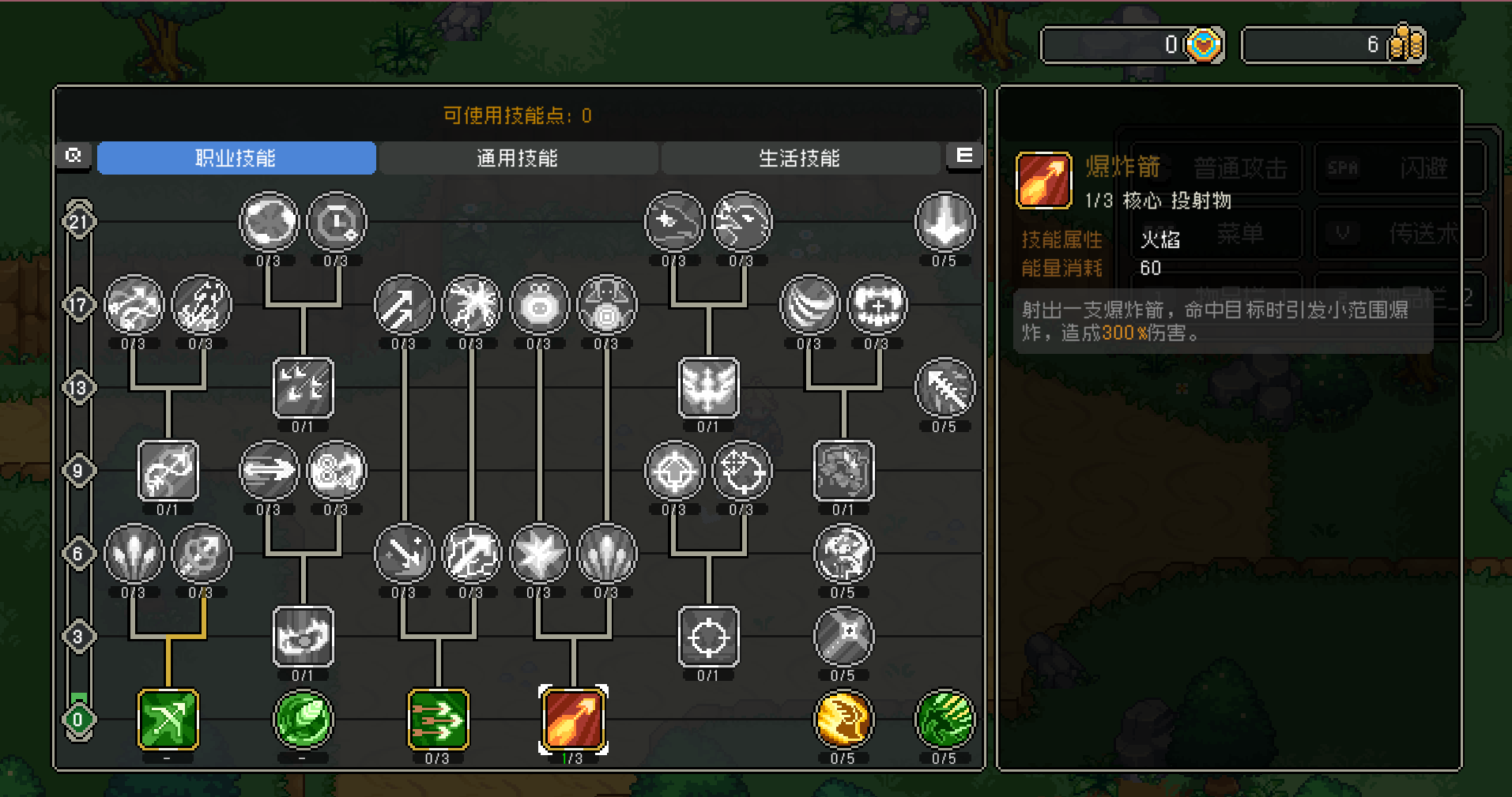 技能点数由升级获得,有很庞大的技能体系,分职业、通用技能、生活技能三大类,每一类有若干树状分支结构,点数投入有选择策略和倾向。