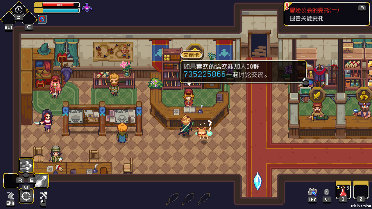 平面ARPG游戏,有点像很早以前的艾兰德传说,采用键鼠操作的方式,一张图清晰的告知所有操作简单易懂,操作手感体验较好。玩法内容量很足,除了战斗和解谜,还带有很多养成内容。城镇场景元素非常多,是一个世界观很完整的小世界,不光有常规商店,还有很多辅助娱乐设施,带有很浓的生活气息。游戏内可以自由调整难度,手残党也可以轻松体验游戏。