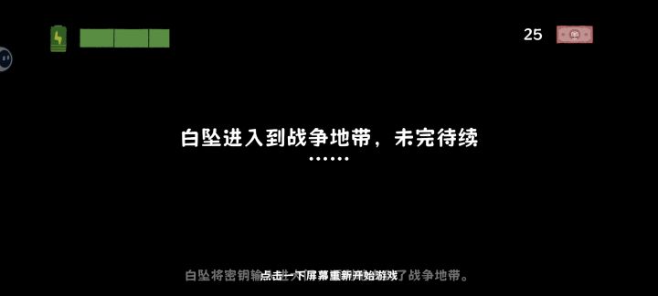 内容较少(目前已知的一个战争地带地图还没做完),结局不少但是每个很短,大概3分钟一个吧,互动较少,感觉地图内可以有更多事件,目前地图内人非常少,以及意义不明的两个电池(目前来看初始满电完全够用)部分结局或许可以拓展一点?比如卡bug结局,如果结局可以在拓展一下会更好;有些bug,如部分结局打完后无法重新开始,会黑屏卡在那里,需退到主菜单重进(我看到一些评论下面作者说已修改,那是五天前了(狐疑))哦,还有一个未确认的bug(看别人有评论这个的,所遇相同故发出)在饿死结局中回房时进进出出会使旁白重复,这或许是……嗯……没有做这方面的考虑,只要达到指定条件就会立刻触发旁白,然后这里就会这样。