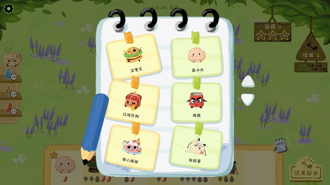 《别碰我的野餐》在关卡设计方面十分用心,一方面表现在平滑的难度曲线上,关卡难度循序渐进;另一方面在于过关和三星过关的区分度上,玩家只要充分理解各个策略食物和得分食物的作用就基本可以过关无忧了,但若想要三星过关,就必须做到精准的计算来最大化收益,同时运气也不能太差,这就非常有挑战性了。简单来说,就是过关不难,二星过关说明你有点厉害,三星过关那就属于高手了。这样的设计既保证了休闲玩家不至于被卡关的挫折感打败,又让硬核玩家享受到策略烧脑的乐趣与过关之后的成就感。