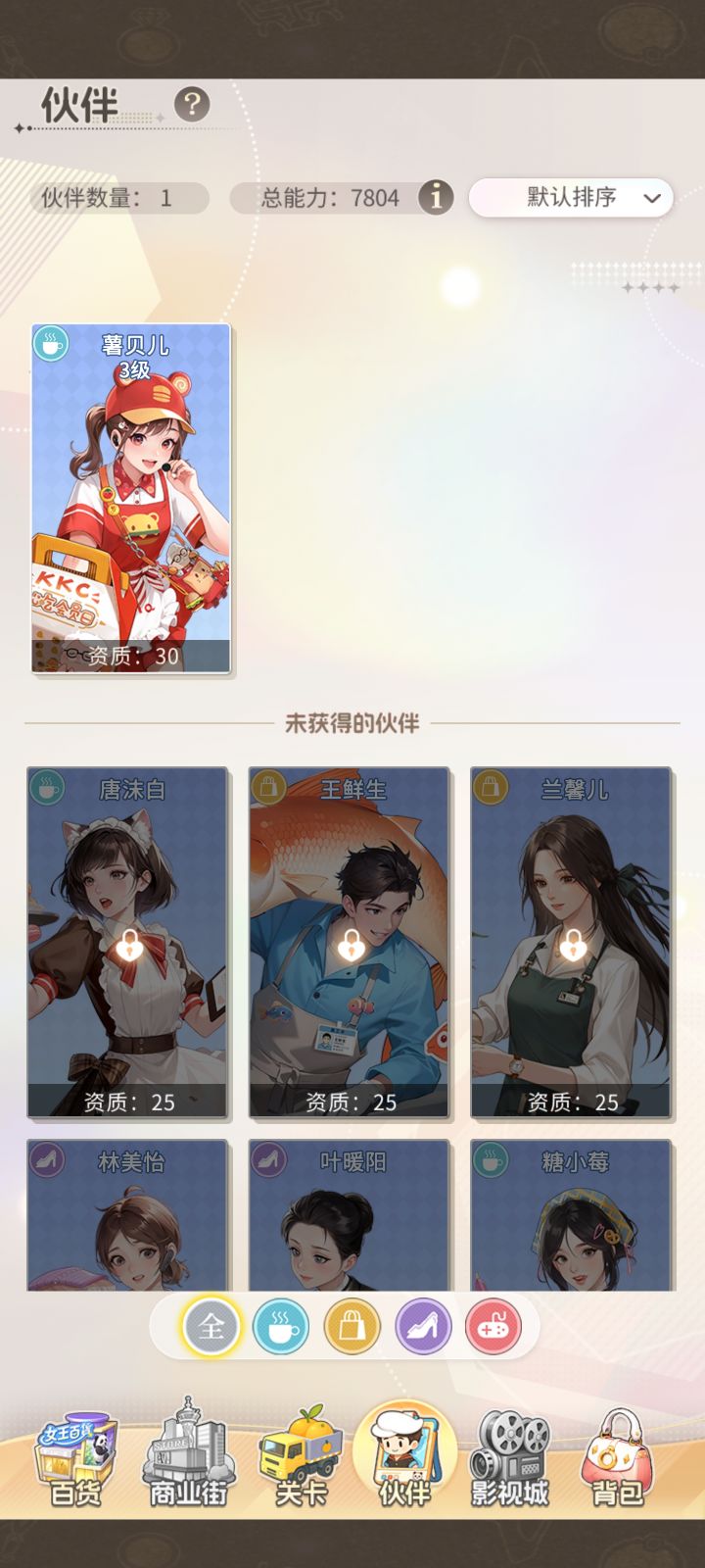 内容不全是百货商场里的,只有三分之一围绕着百货商场,其余的有商业街,影视城,与其说是百货商店经营游戏,不如说是通俗易懂的老板模拟游戏,商业街会有私人会馆,商战,直播带货,环球旅行等内容,影视城就是派出艺人拍片子获得资金加成。如果只想玩百货商场经营游戏的可以走了,内容含量较少