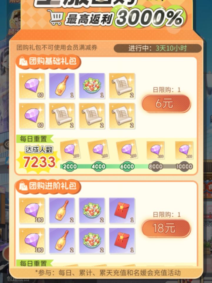 #时尚百货城攻略 看攻略,少走弯路。零氪玩家,我是走了不少弯路才总结的经验,希望对新手有点帮助:1. 上线把所有红点和商业街的活动都过一遍。商战和私人会馆放最后,领完一圈东西,把伙伴升一升再去打。2. 百货城里的生鲜超市、庞物店去进货,电影院去揽客,每隔段时间进去点一下,有上限的。3. 影视城的拍摄、环球差旅也是隔段时间去点一下,不用达到上限就不增了。4. 入个好的名缓会。我入的是服里排