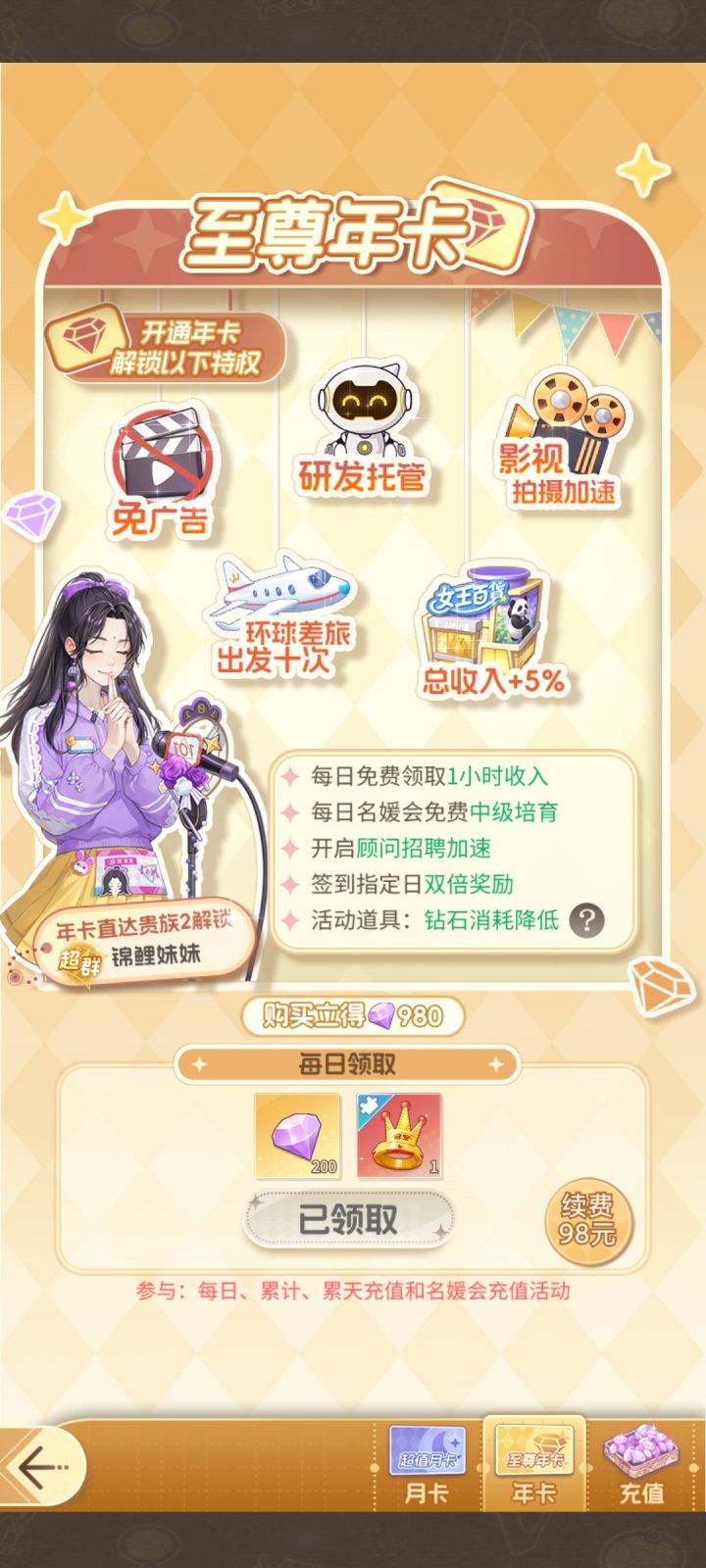 商店:所有商店包括活动里面的优先级兑换,突破材料是名列前茅的,这东西极缺!之后个人建议是兑换阅历卡,登机牌,邀请函,服饰币,家具币,剩余的按需兑换。 扭蛋机:这玩意基本全是冲着保底去的,优先兑换艺人凌薇,因为后面活动给皮肤,详情看图。 氪金建议:要么你就6元党,体验稍微好一点,其他都不碰,你要是碰了别的,后面的部分氪金点也直接氪掉,直接凑个组合,不然按性价比来看,蠢飞了。双卡(这个卡很难用语言