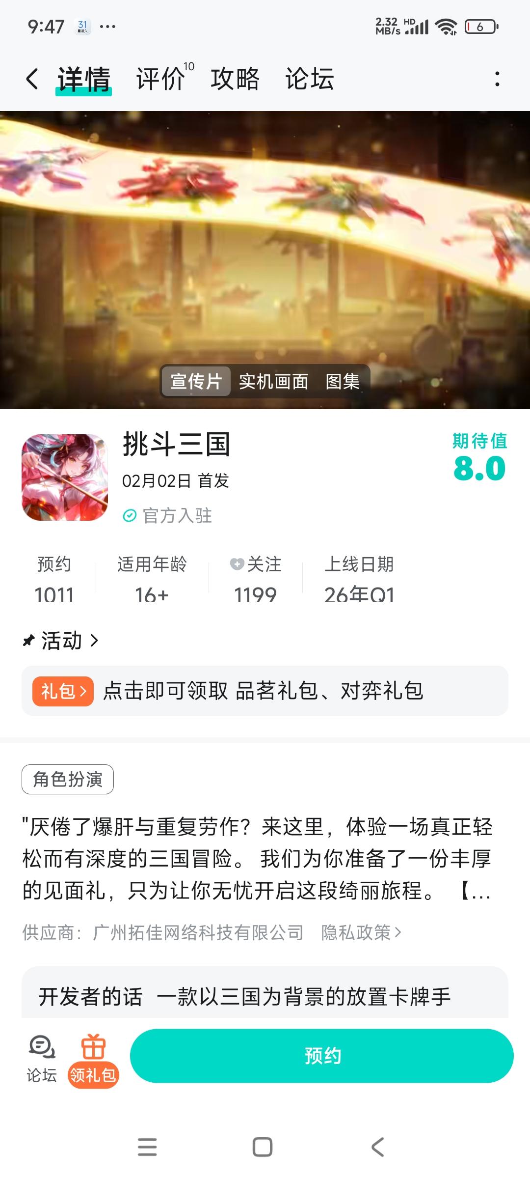 三国卡牌新游福利直接拉满!进服狂送1000抽,破甲赵云、神级吕布等天花板卡牌即刻带走!轻松摸鱼、畅快三国,古战场气势恢弘,武将技能炫酷,我们还为大家准备了丰厚的见面礼哦,现在参加盖楼活动,即有机会领取豪华大礼!【挑斗三国福利发车】💥福利一:预约必得豪礼!点击下方链接预约,并在评论区留下你的预约截图,即可进玩家群联系【客服小漫】领取一份专属预约礼包哦!🎁专属福利礼包如何解锁专属好礼?1