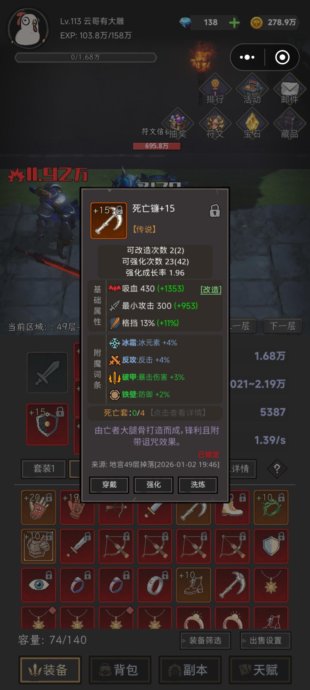 30成挂机了两天,没见几个可以用的装备,31层打不过