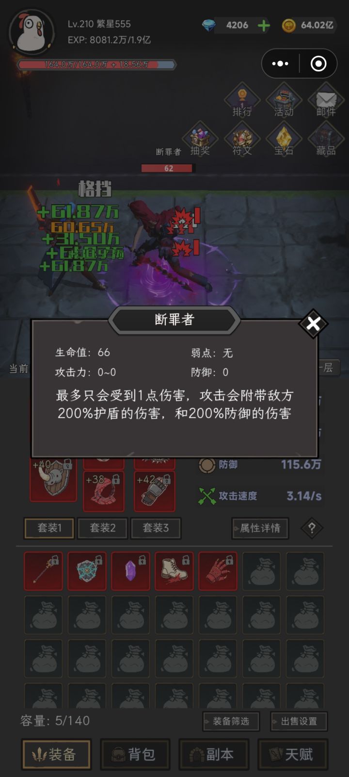 91大攻4300w也只能下掉一多半,分分钟回满,咋办?是降攻速还是追输出?听说奥法有奇效,67/68层刷的两件套一路飙到1300多万,涨幅高达45%,火法爆表。抽两张强化券,洗练改造看看效果可好。(破案 3623w大攻 1378w火攻过关)听说从92开始大攻沦为鸡肋,血量上位,慢慢堆,不急,主打一个挂机。感谢大佬们的指导,受教。92卡了几天顺利过掉。87层6次改造的高成长魔化魂灵项链一