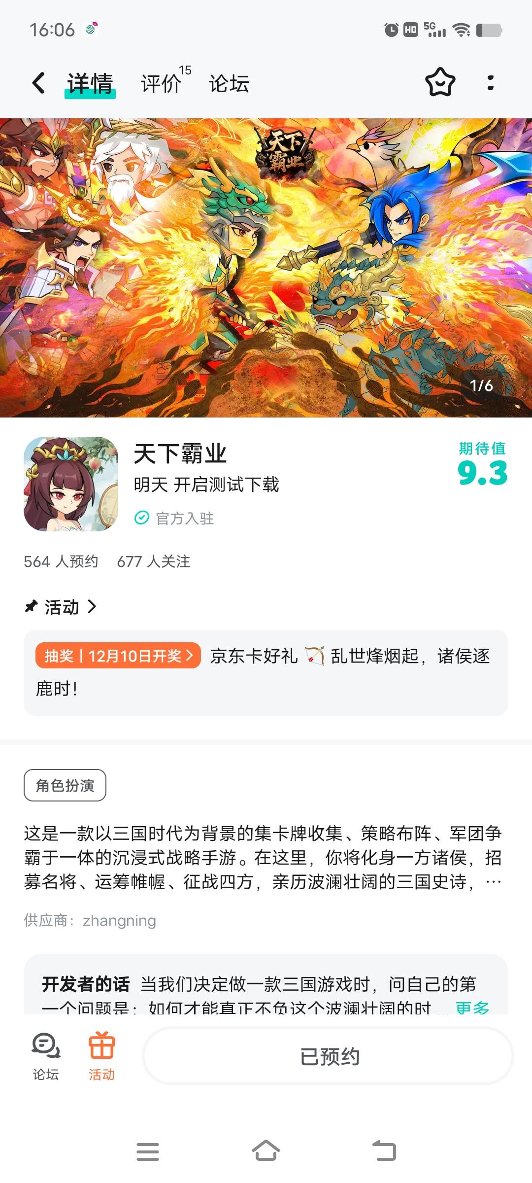 各位主公久候了!集卡牌收集、策略布阵、军团争霸于一体的沉浸式三国战略手游,明日正式开测!化身一方诸侯,招募曹操、刘备、吕布、诸葛亮等三国名将,亲历波澜壮阔的史诗战役,用智谋定天下,用热血写传奇!⏰开测时间:2025年11月27日 10:00🎁 开测专属福利:【京东卡抽奖活动】▶ 参与方式1.点击关注发帖账号并预约《天下霸业》且发新帖晒截图2.在本帖下方评论区分享发帖链接即可【奖品发放】