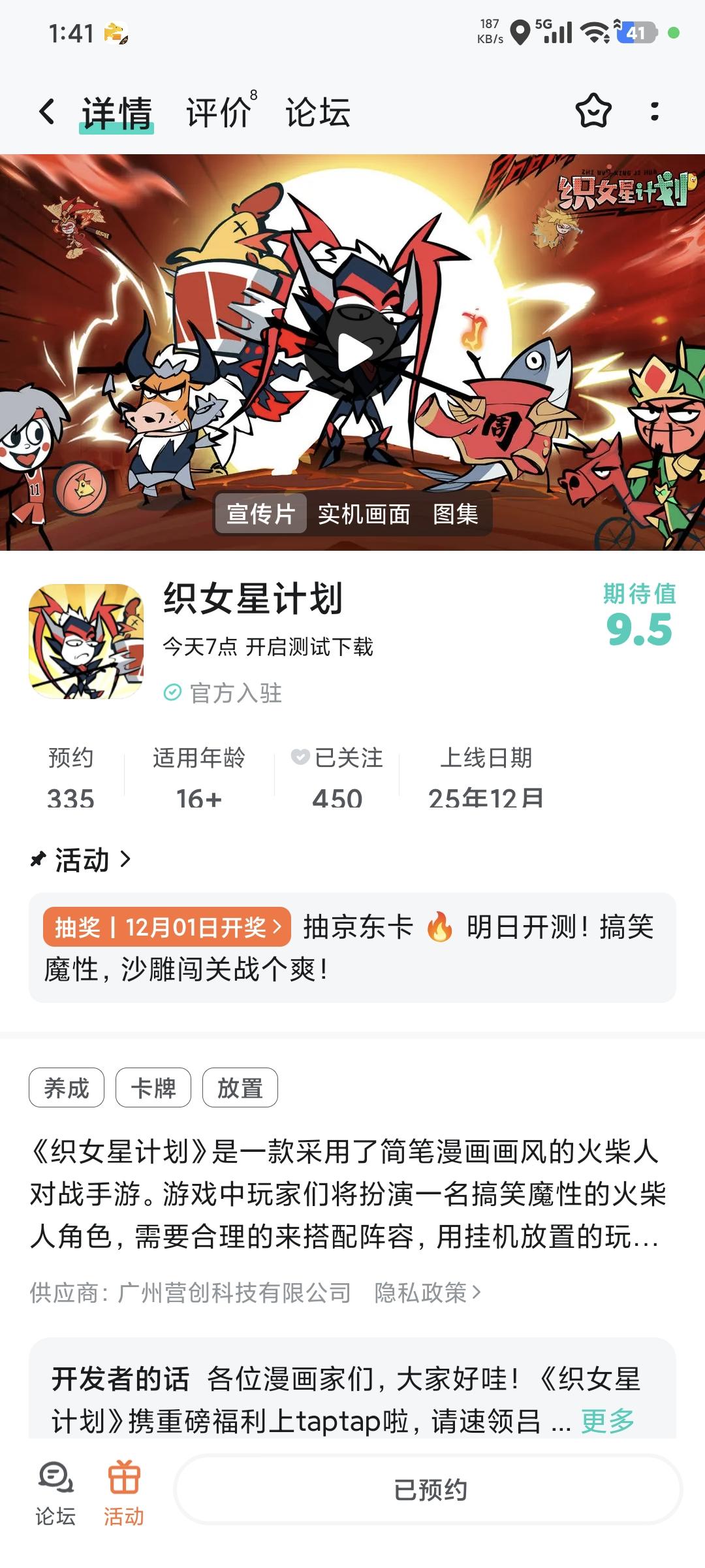 恭喜下面三位绘画家中奖,中奖的用户可在72小时内添加客服QQ,提供中奖凭证+tapID截图联系客服领取~【客服QQ】3515425294【官方Q群】964476899《织女星计划》是一款采用了简笔漫画画风的火柴人对战手游。游戏中玩家们将扮演一名搞笑魔性的火柴人角色,需要合理的来搭配阵容,用挂机放置的玩法参与每一场的对局。游戏中搞笑的角色人设以及沙雕无厘头的剧情,能够带给玩家们无尽的欢乐,感受