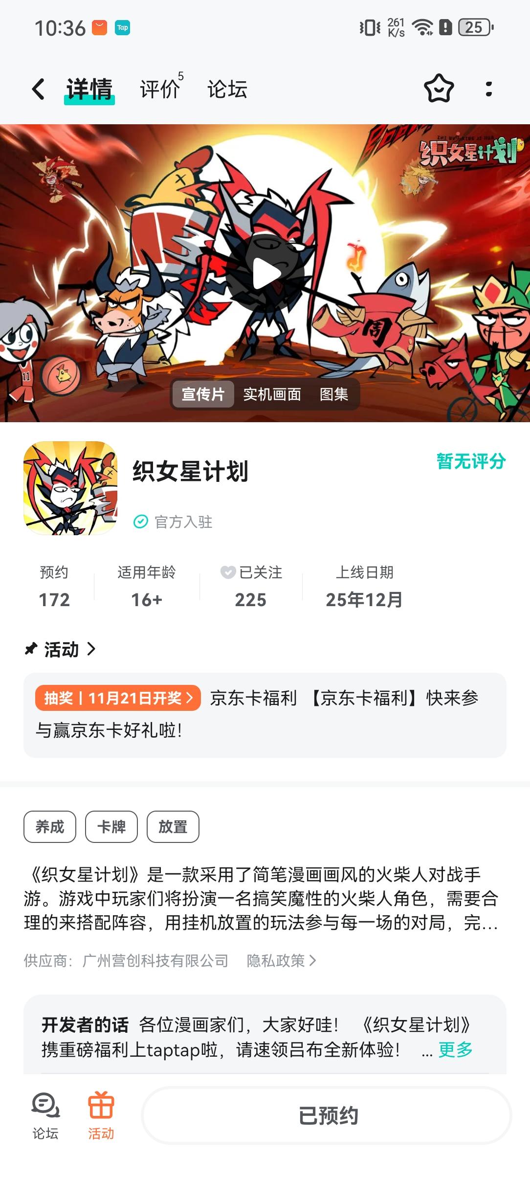 恭喜下面三位绘画家中奖,中奖的用户可在72小时内添加客服QQ,提供中奖凭证+tapID截图联系客服领取~【客服QQ】3515425294【官方Q群】964476899《织女星计划》是一款采用了简笔漫画画风的火柴人对战手游。游戏中玩家们将扮演一名搞笑魔性的火柴人角色,需要合理的来搭配阵容,用挂机放置的玩法参与每一场的对局。游戏中搞笑的角色人设以及沙雕无厘头的剧情,能够带给玩家们无尽的欢乐,感受