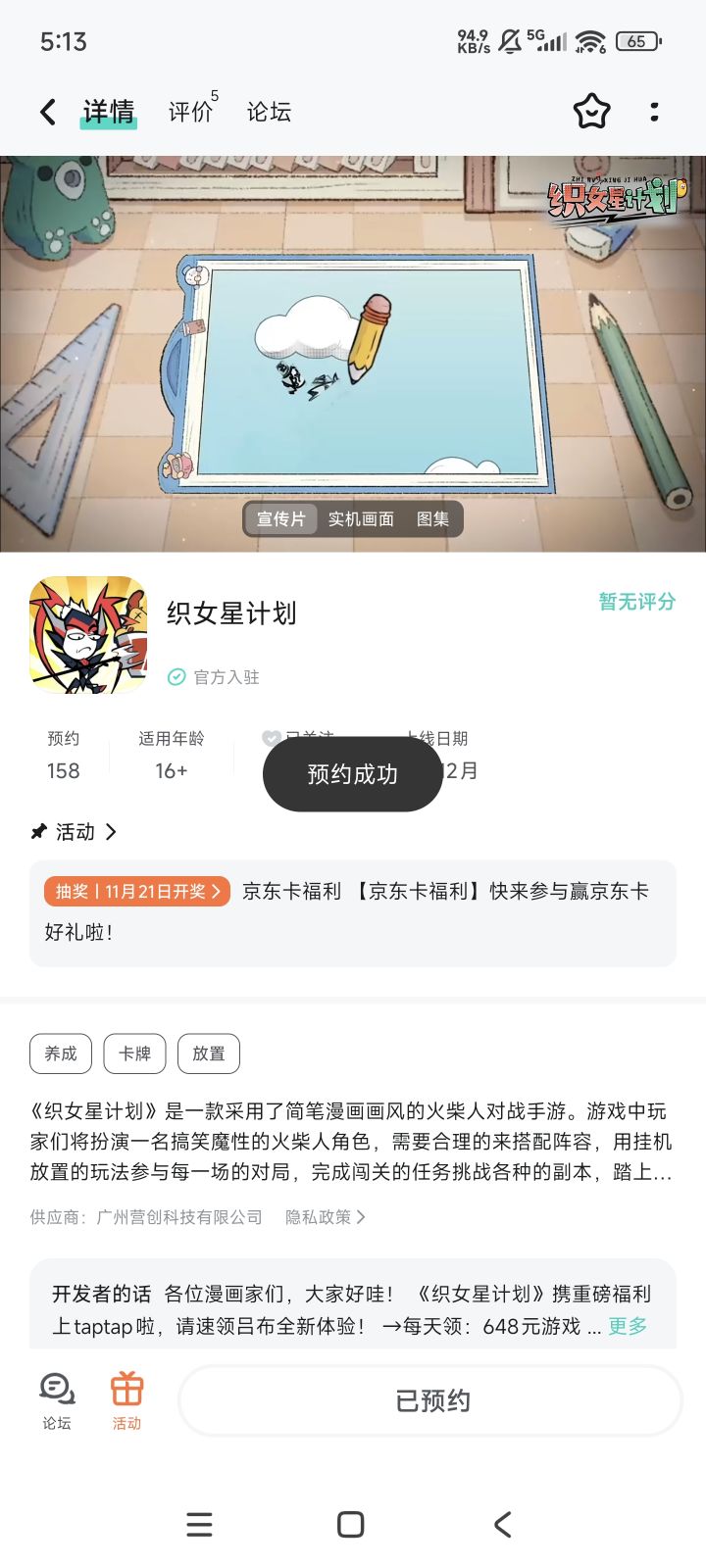 恭喜下面三位绘画家中奖,中奖的用户可在72小时内添加客服QQ,提供中奖凭证+tapID截图联系客服领取~【客服QQ】3515425294【官方Q群】964476899《织女星计划》是一款采用了简笔漫画画风的火柴人对战手游。游戏中玩家们将扮演一名搞笑魔性的火柴人角色,需要合理的来搭配阵容,用挂机放置的玩法参与每一场的对局。游戏中搞笑的角色人设以及沙雕无厘头的剧情,能够带给玩家们无尽的欢乐,感受