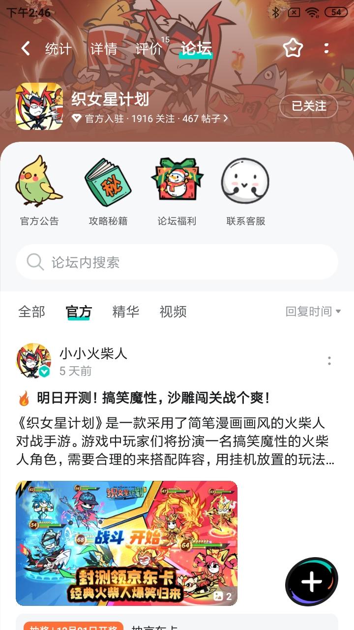 恭喜下面三位绘画家中奖,中奖的用户可在72小时内添加客服QQ,提供中奖凭证+tapID截图联系客服领取~【客服QQ】3515425294【官方Q群】964476899《织女星计划》是一款采用了简笔漫画画风的火柴人对战手游。游戏中玩家们将扮演一名搞笑魔性的火柴人角色,需要合理的来搭配阵容,用挂机放置的玩法参与每一场的对局。游戏中搞笑的角色人设以及沙雕无厘头的剧情,能够带给玩家们无尽的欢乐,感受