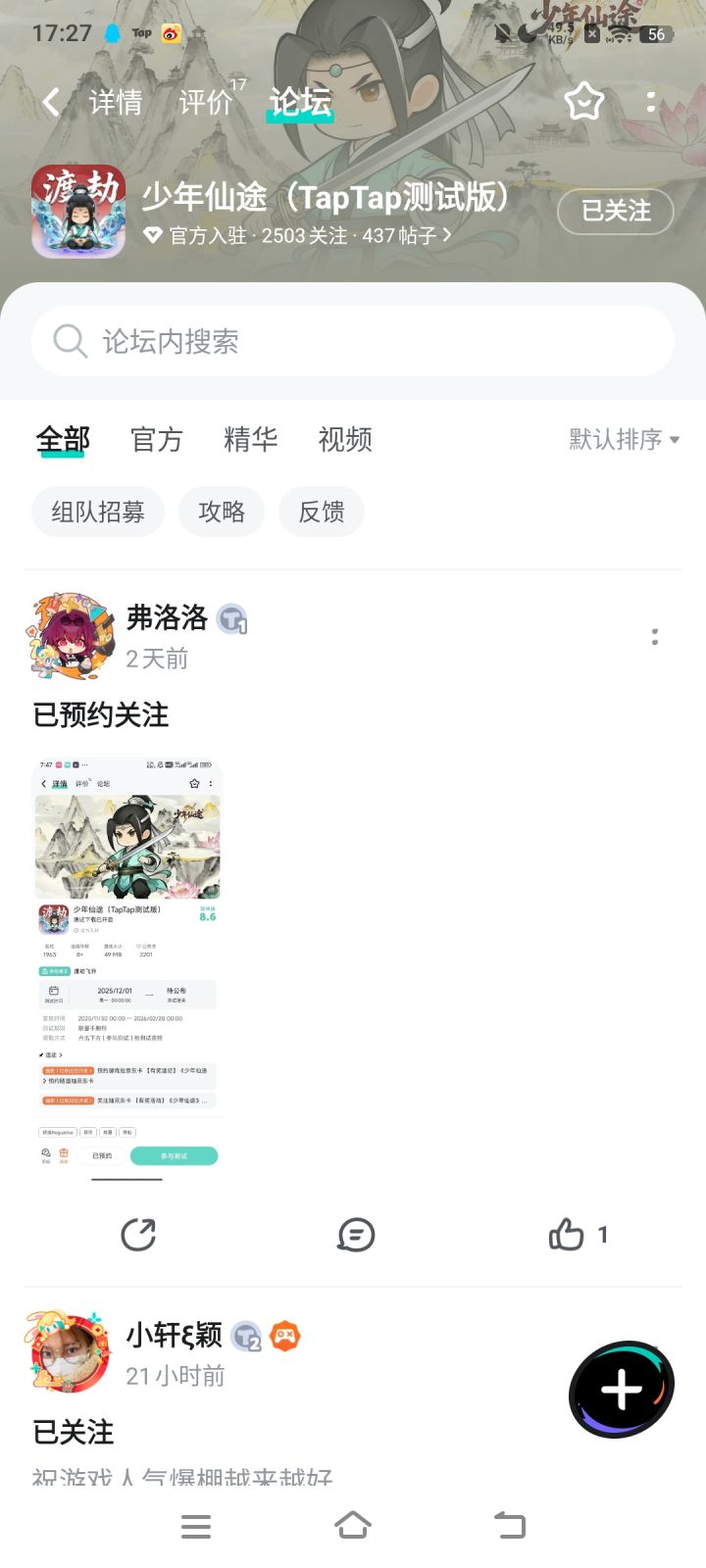 论坛专属活动已启,速来参与赢福利!预约游戏发新帖晒截图,赢取京东卡好礼【参与方式】1.点击关注预约《少年仙途》并发新帖晒截图2.在本帖下方评论区分享发帖链接即可【活动时间】即日起至12月2日【活动奖励】随机抽取1名符合参与条件的玩家获得:50元京东卡一张【活动规则】1.内容禁止涉及暴力、色情、政治、恐怖内容,违者做删帖处理并取消活动资格;2.回复内容需与活动主题相关,若抽中楼