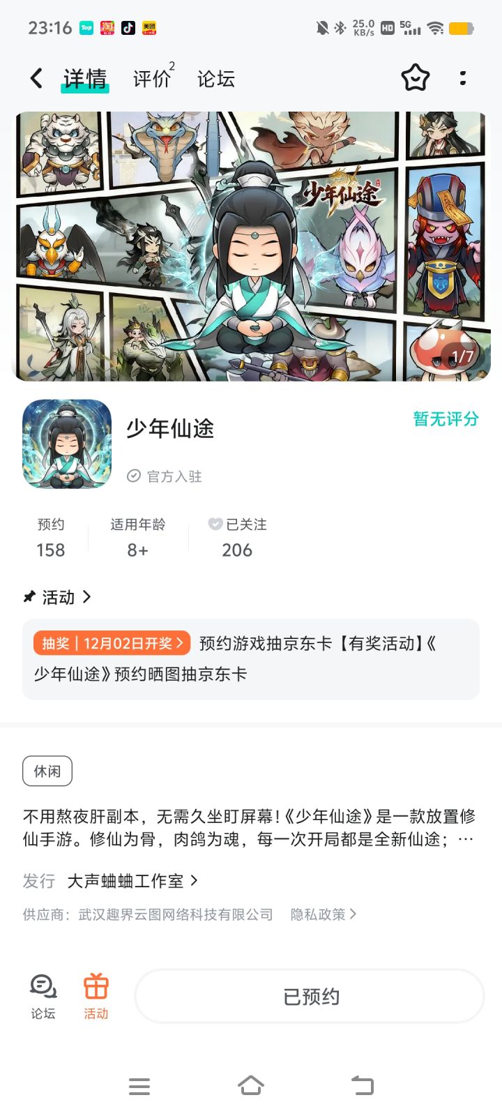 论坛专属活动已启,速来参与赢福利!预约游戏发新帖晒截图,赢取京东卡好礼【参与方式】1.点击关注预约《少年仙途》并发新帖晒截图2.在本帖下方评论区分享发帖链接即可【活动时间】即日起至12月2日【活动奖励】随机抽取1名符合参与条件的玩家获得:50元京东卡一张【活动规则】1.内容禁止涉及暴力、色情、政治、恐怖内容,违者做删帖处理并取消活动资格;2.回复内容需与活动主题相关,若抽中楼