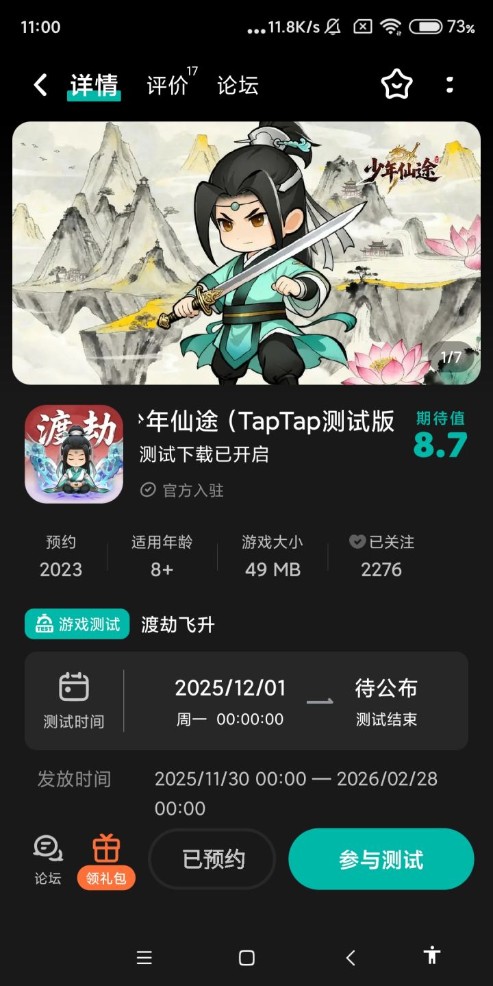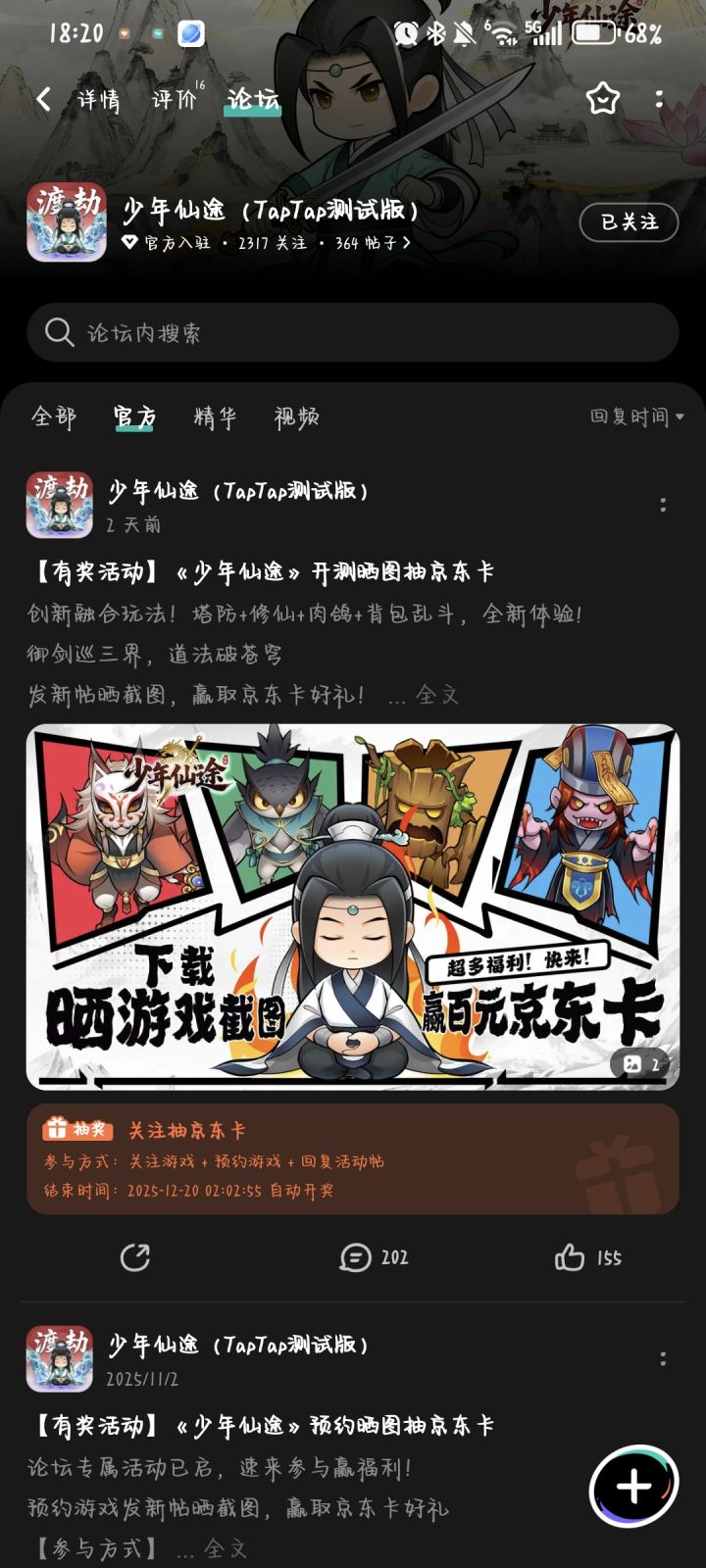 论坛专属活动已启,速来参与赢福利!预约游戏发新帖晒截图,赢取京东卡好礼【参与方式】1.点击关注预约《少年仙途》并发新帖晒截图2.在本帖下方评论区分享发帖链接即可【活动时间】即日起至12月2日【活动奖励】随机抽取1名符合参与条件的玩家获得:50元京东卡一张【活动规则】1.内容禁止涉及暴力、色情、政治、恐怖内容,违者做删帖处理并取消活动资格;2.回复内容需与活动主题相关,若抽中楼