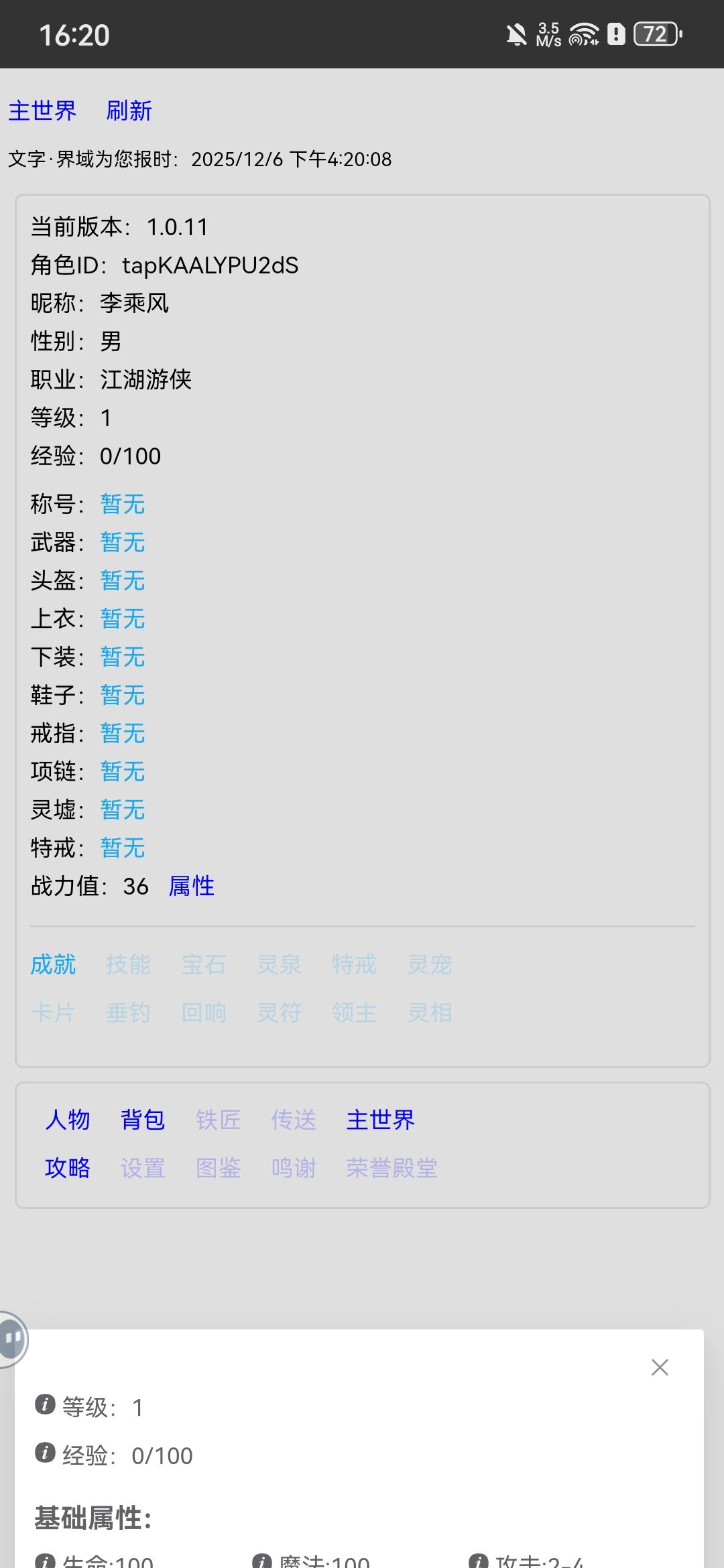 本人11月7号下午开始玩的,之前测试都没参与过,第一次接触到这个游戏分享一些个人的理解和经验。想到什么内容就说什么了,每一段落之间如有太大跳跃,还望各位大佬理解,毕竟本人不是作者,对游戏的理解还不是太深刻。对这款游戏感觉是不错的,会坚持玩下去并持续更新。先说几个重点。1.这是一款纯文字游戏,在游戏内只有各种文字按钮可以点击,没有任何画面。游戏没有任何氪金的点,没有排行榜,没有游戏内玩家之家的交易