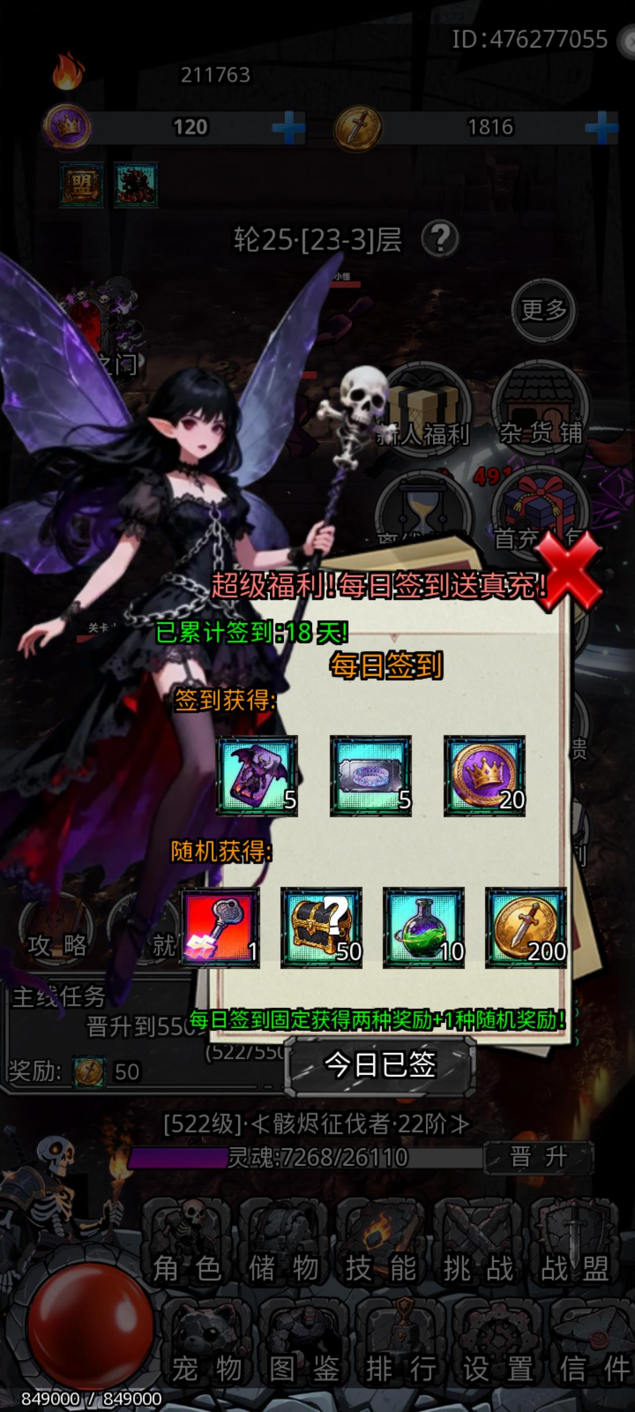 玩法挂机休闲养成,副本可扫荡,上班摸鱼收菜无压力,零氪也能畅玩,每日累计签到可兑换充值奖励月卡终身卡等