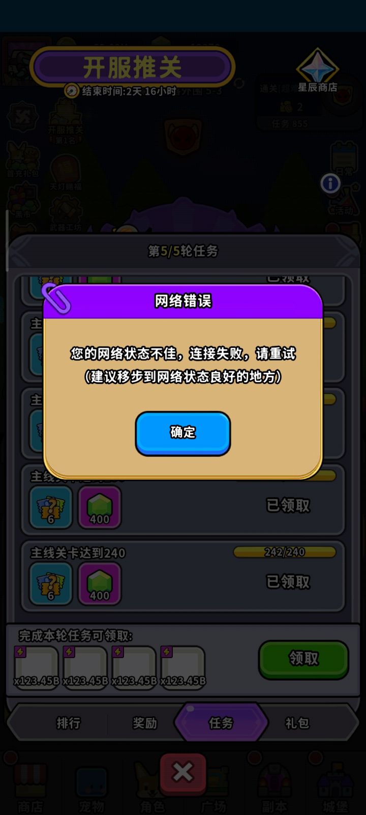 游戏能不能把这些基础的bug给修了啊,点击领取就掉线,奖励都给你吞了,这些表面的bug都不修你还指望氪金?
