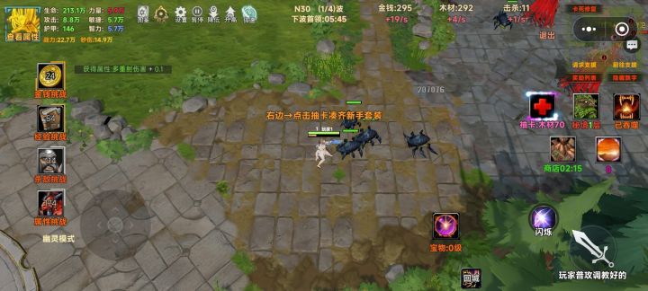 英雄选择:游戏开始有免费三次刷新英雄的机会,优先选择UR英雄,若没有UR,SSR英雄也可接受,若都没有,建议重开。目前法师单刷最强,若开局技能出三个金钱则更好,没有也可点开木头尝试。组队时,力量型、敏捷型英雄能抗怪,需站在队友旁边,否则怪会攻击基地。技能与属性选择:进游戏领完三次新手奖励后,先不选技能和升级属性,而是先点英雄,根据三次刷新出的SR、SSR、UR英雄来决定玩什么属性,不选力量属