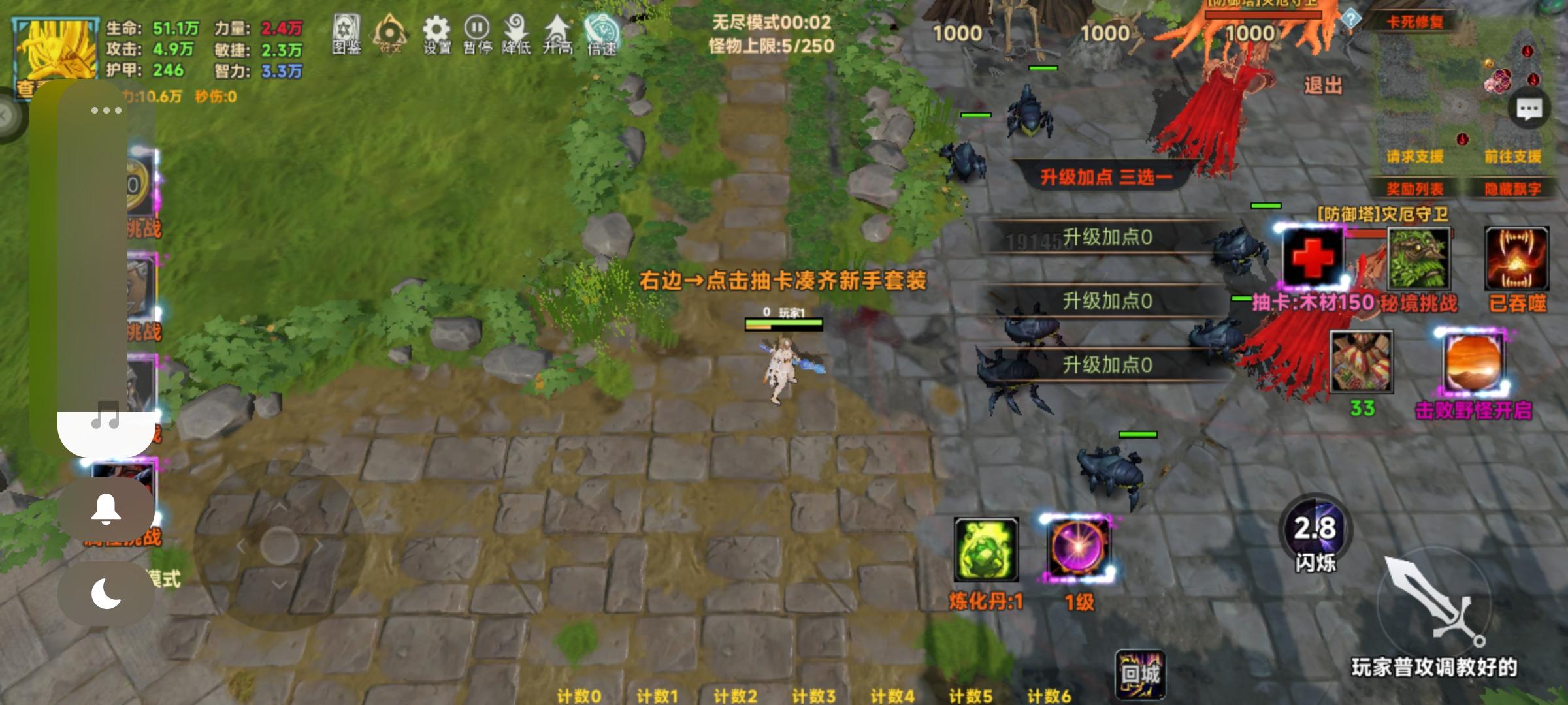 槽位可以做个半透明边框,凸显有6个槽位是上限,不然对新手很不友好,当时我玩到N7关都半清不楚的一直顶掉技能,还有1500击杀兑换的随机吞噬石但是每次都是默认吞噬的第一个技能,看修改名字还是让它真的随机