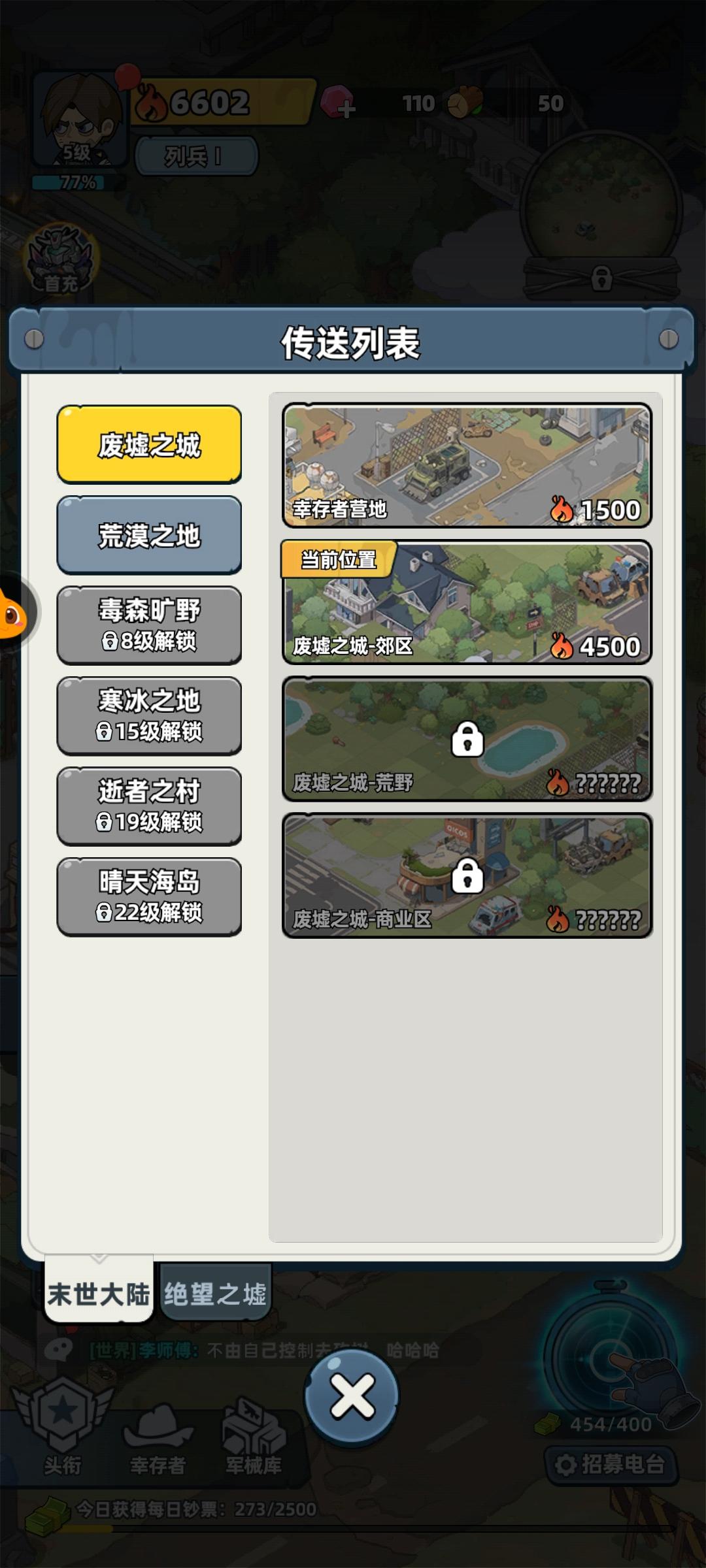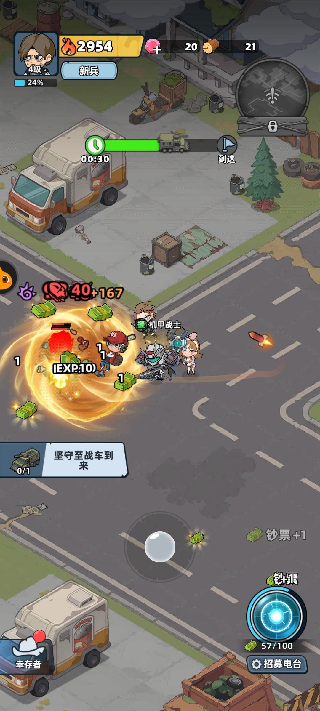 轰隆隆佣兵团的换皮版本,基础操作相同,也是走地图开地图的玩法模式,唯题材不同而已,相同类型游戏在小游戏也见过,创新内容不多,体验层十分接近。有简单的新手教学,己方角色被僵尸抓了还不死,等着人来救。解锁区域还需要进行砍树,看着就有点出戏。