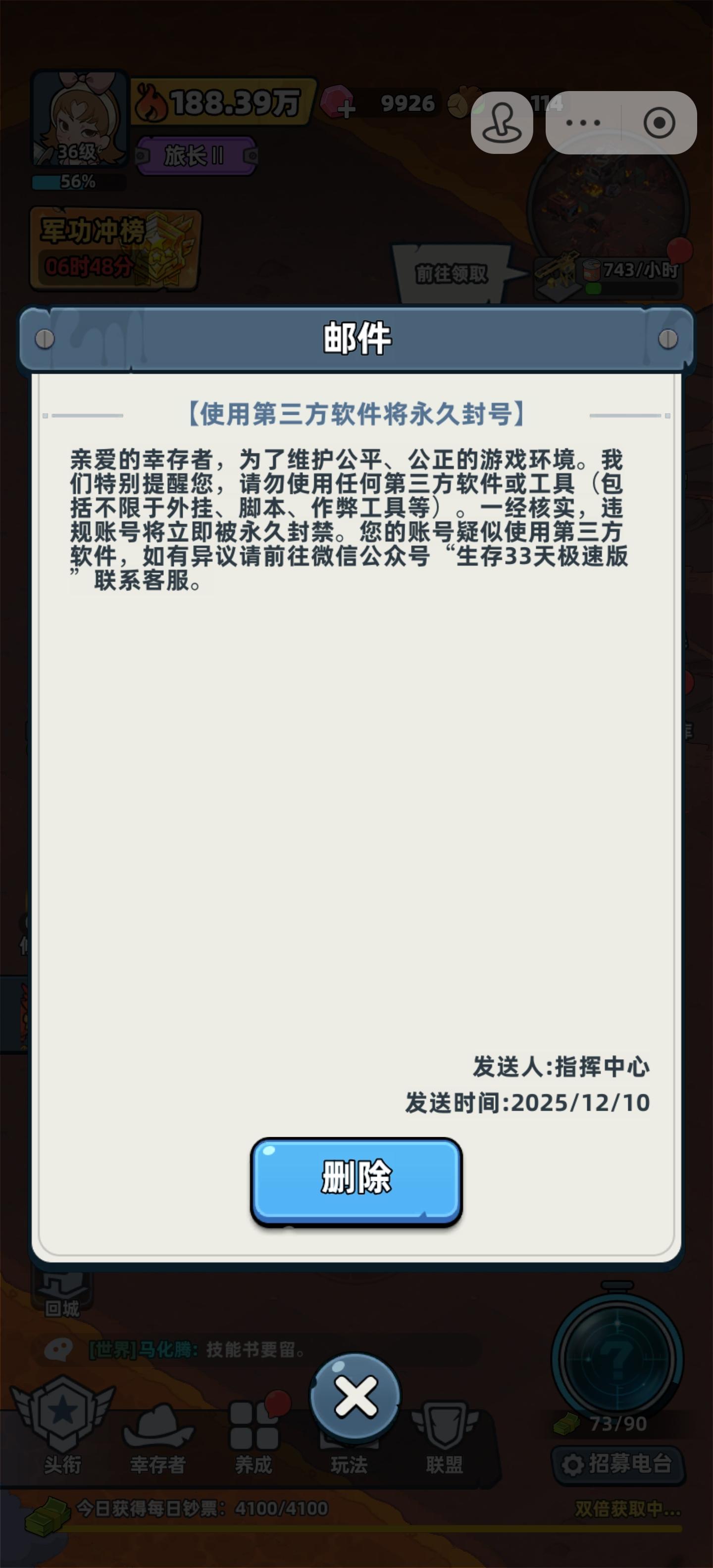 亲爱的幸存者们, 漫长的等待终于迎来曙光——《生存33天》不限量开放测试,正式定档!感谢你们一路以来的坚守与陪伴,末日废墟之上,人类文明的火种因你而重燃。现在,请做好准备,属于你的生存挑战,即将全面开启! 在评论区回复口令 “33天之后究竟有什么?!” ,并贴上你的角色信息即可参与活动,赢取 100元京东卡(共5份,先到先得)!我们期待你的答案,也更期待与你并肩面对这个世界的终极悬念。我们