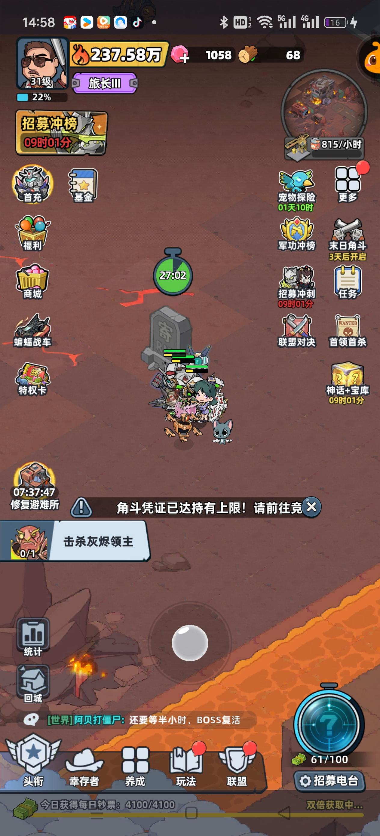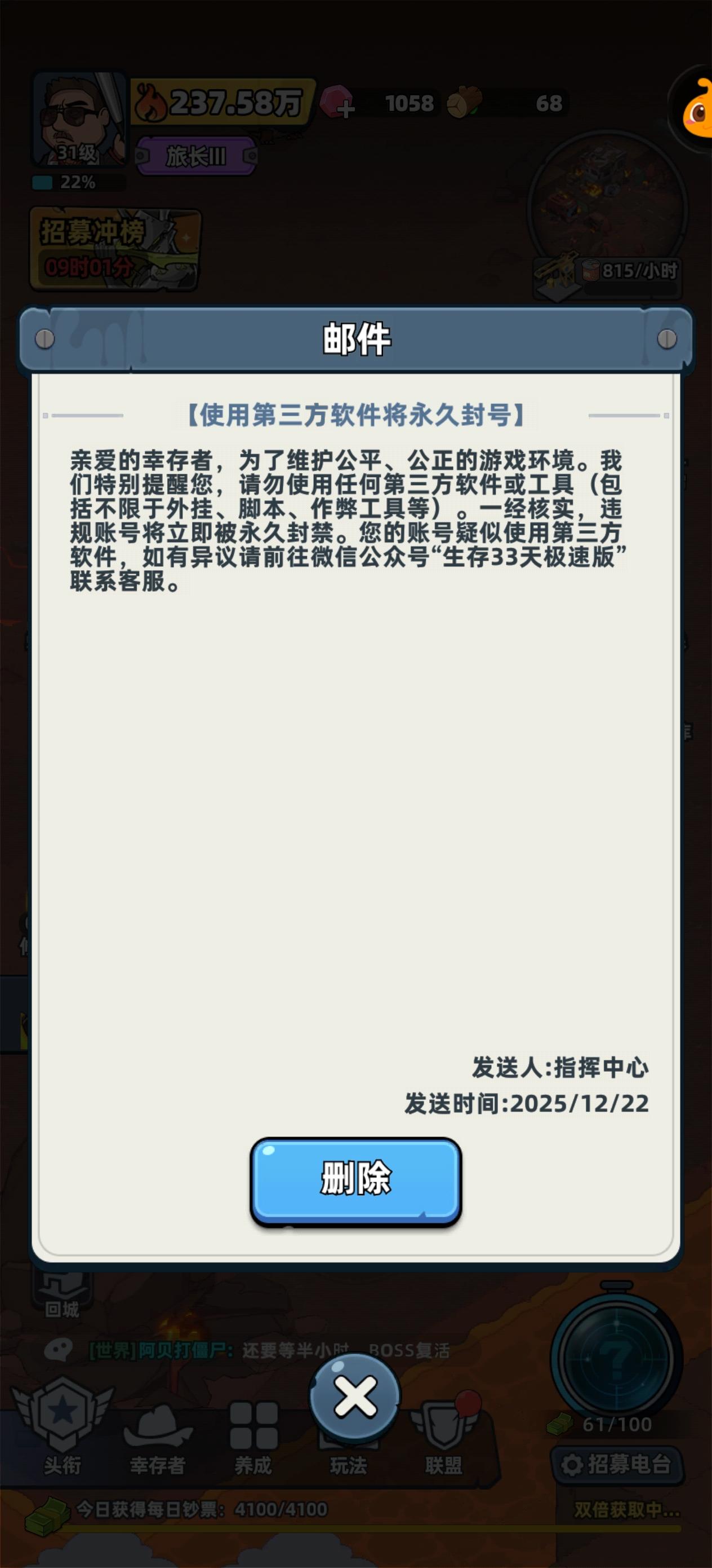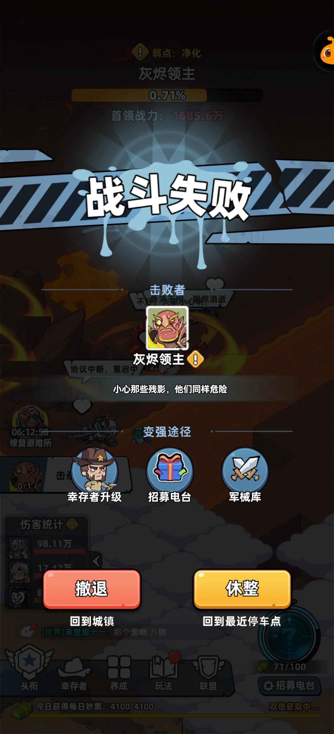 新手:夯实基础,快速升级核心目标:提升战队等级、解锁基础玩法,积累幸存者养成资源,为后面强化铺垫。废墟之城→晴天海岛(1)推图:前期最高优先级!全力推进关卡至等级限制,不仅能获取大量经验快速升级,还能解锁更高等级的挂机收益上限,部分关卡额外掉落钻石、装备碎片等稀缺资源。卡关时优先升级幸存者等级、穿戴基础装备,战力达标后立即回归推图。兑换码:VIP666VIP777VIP888SVIP