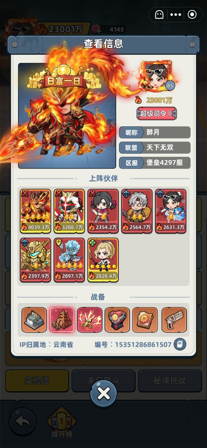 0氪一个月战力终于突破100万了