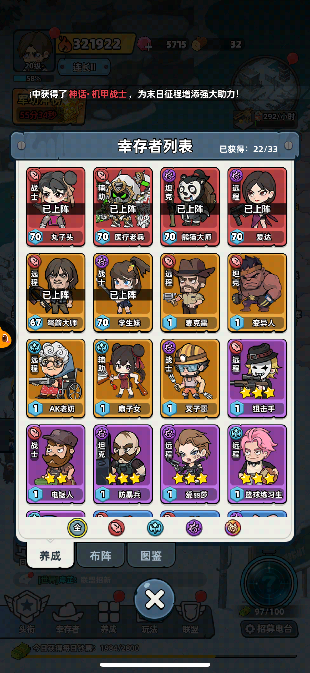 主页面只有一个字…充钱!英雄四千五百多级,零氪只能挂机一天上线一下,主线有时间限制,你品你细品,零氪靠挂机,主线有时间限制#发现好游戏 #生存33天