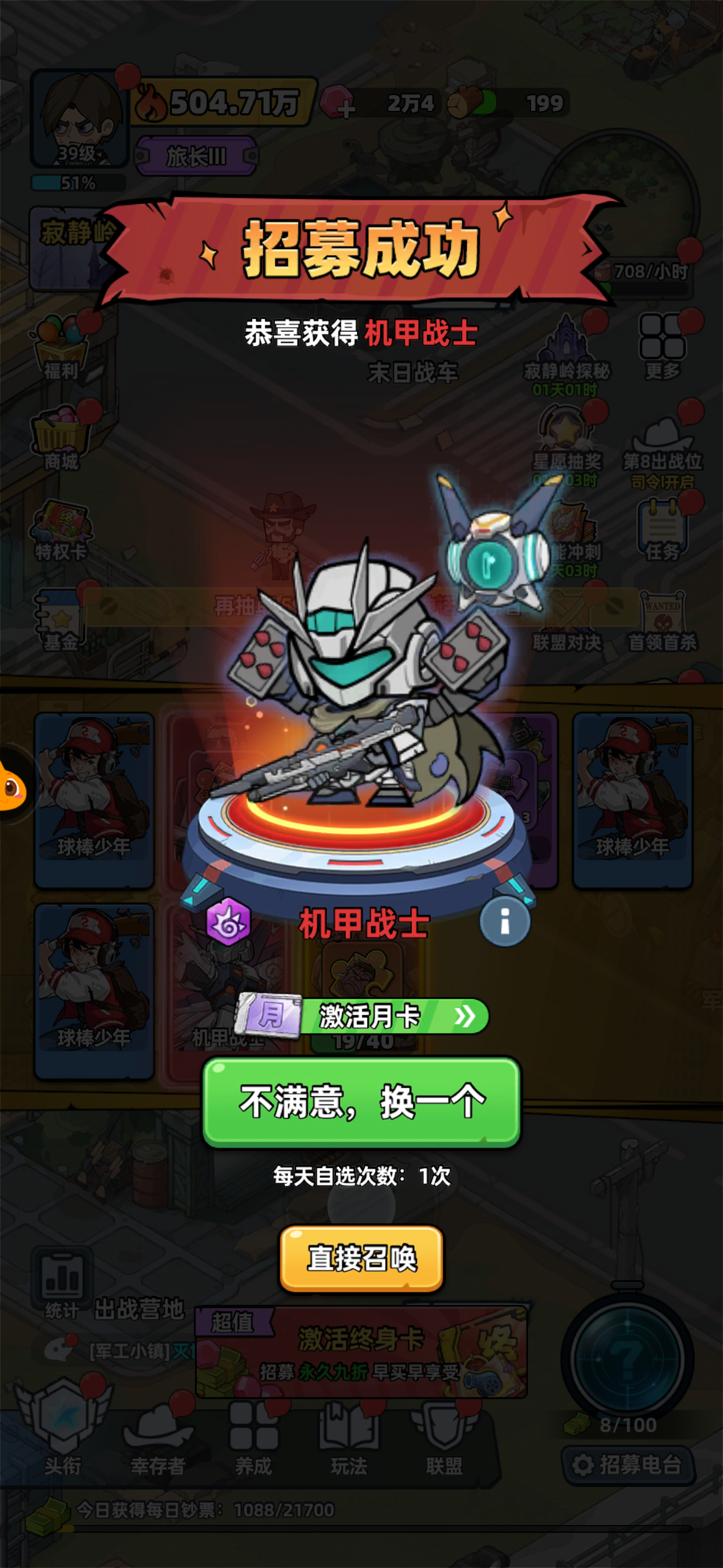 新手:夯实基础,快速升级核心目标:提升战队等级、解锁基础玩法,积累幸存者养成资源,为后面强化铺垫。废墟之城→晴天海岛(1)推图:前期最高优先级!全力推进关卡至等级限制,不仅能获取大量经验快速升级,还能解锁更高等级的挂机收益上限,部分关卡额外掉落钻石、装备碎片等稀缺资源。卡关时优先升级幸存者等级、穿戴基础装备,战力达标后立即回归推图。兑换码:VIP666VIP777VIP888SVIP