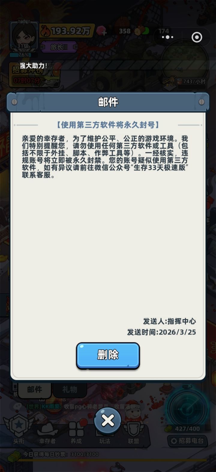 你都开挂了这能算数吗?我没开挂也是越战力挑战也没收到封号,现在是大元帅1一分钱都没花。
