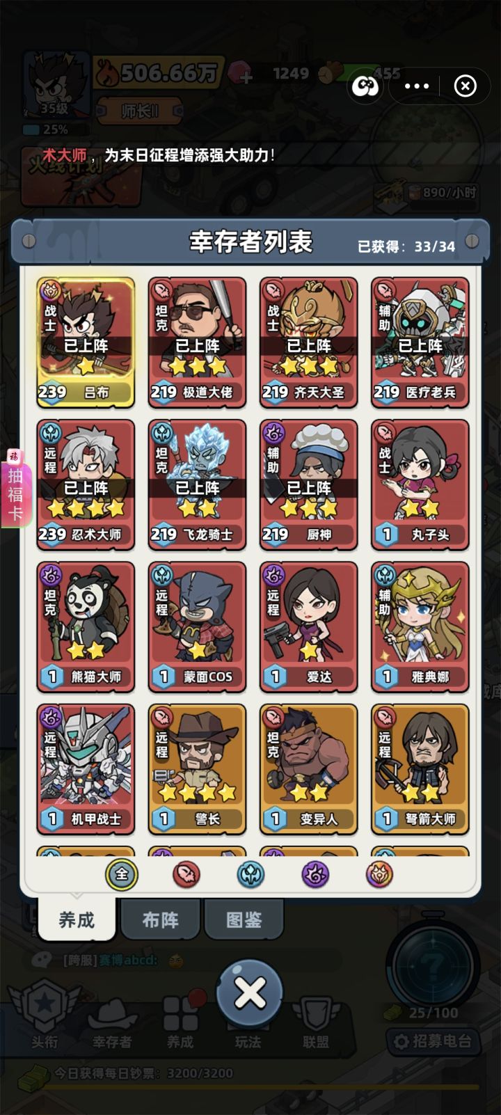 兑换码:0202SYQD有效期:2026年2月09日兑换码:一夜春风来兑换码:版本盛启兑换码:我们是未来兑换码:V-so-风叶沐沐-洄44获取内容:90000钻石T0 天花板阵容(全阶段通吃)异能爆发流(零氪 / 首充可玩)阵容:机甲战士(主 C)+ 熊猫大师(坦)+ 爱达(增伤)+ 忍术大师(减疗)+ 厨神(奶)+ 齐天大圣(副 C / 坦)核心羁绊:4 异能 + 2 肉盾#生存33天