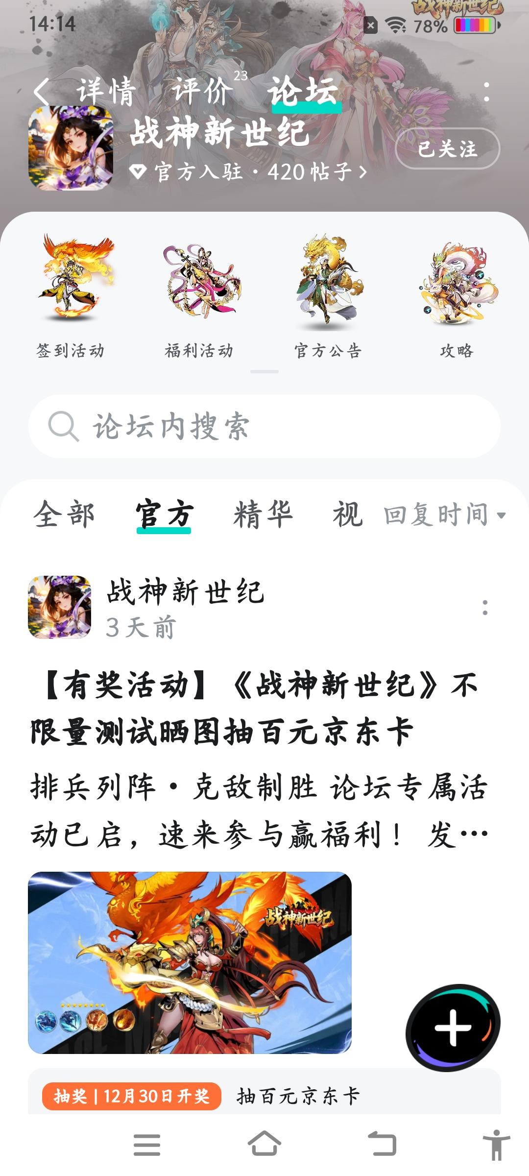 排兵列阵・克敌制胜论坛专属活动已启,速来参与赢福利!发新帖晒截图,赢取百元京东卡好礼【参与方式】1.点击关注《战神新世纪》并发新帖晒截图2.在本帖下方评论区分享发帖链接即可【活动时间】即日起至12月30日【活动奖励】随机抽取1名符合参与条件的玩家获得:100元京东卡一张【活动规则】1.内容禁止涉及暴力、色情、政治、恐怖内容,违者做删帖处理并取消活动资格;2.回复内容需与活动