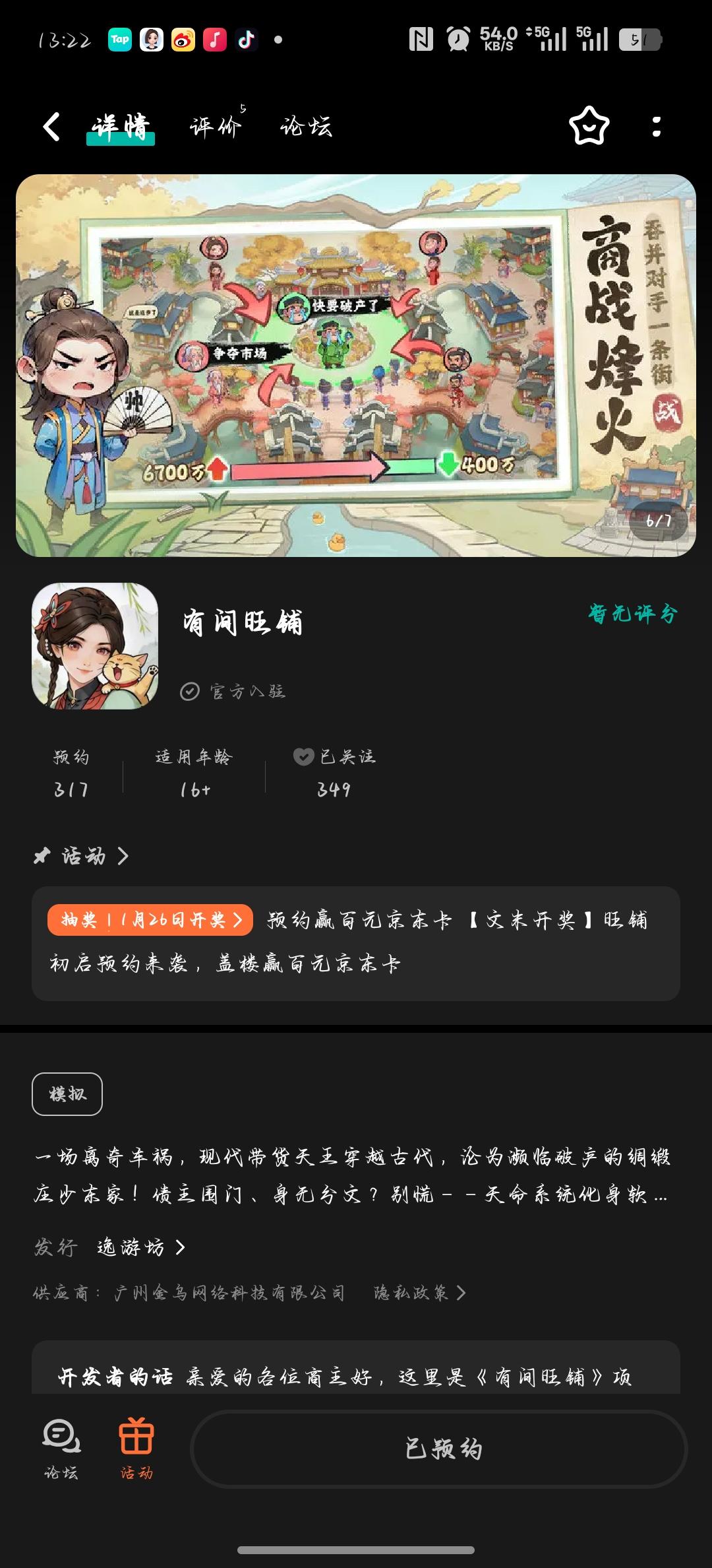 商主们好,这里是你的最佳得力辅助系统小助手咪咪,咱们的穿越放置经营游戏《有间旺铺》正式启动预热啦!咱们项目组目前正在猛猛开肝填充游戏内容,在预约期间也欢迎各位催更和预约支持。作为见面礼,现在预约+按要求盖楼回复即有概率赢取京东卡奖励哦。顺便预告一下,小助手咪咪之后还会再不定期上线社区活动给大伙发福利哦。【活动时间】2026年1月8日10:00~2026年1月25日23:59。活动开奖公告会