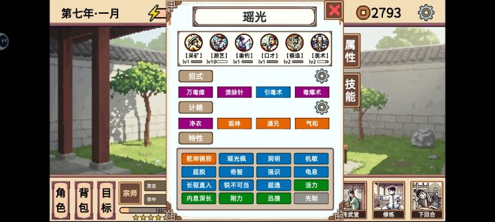 打明心破妄扣光对面内力最重要。角色选瑶光,叠血,靠天赋技能输出计策:通元(必选),蓄元(好用),剩下两个看情况(需要足够数量的毒种来释放绿色或紫色的吸蓝招式,优先保留净衣,然后刷个毒涌或者招式万毒瘴),刚御(初始抵御看情况拿,合出紫色以上的最好留着备用)招式:至少学一个提供抵御的招式。绿色截脉(还是错脉来着,每回合扣蓝的,可叠层数,叠到对面调息回不上蓝就可以不继续释放了,非常好用)。万毒瘴(有计策毒涌则可不学)紫色腐脉噬心(六种毒吸25%蓝)或绿色百毒吞元(三种毒吸20%蓝)狮子吼(可选,叫卖十级解锁)条件满足可越阶心魔,记得多多尝试,运气好的话一流高手就能打满七次,心魔奖励优先口才经验和医学经验。