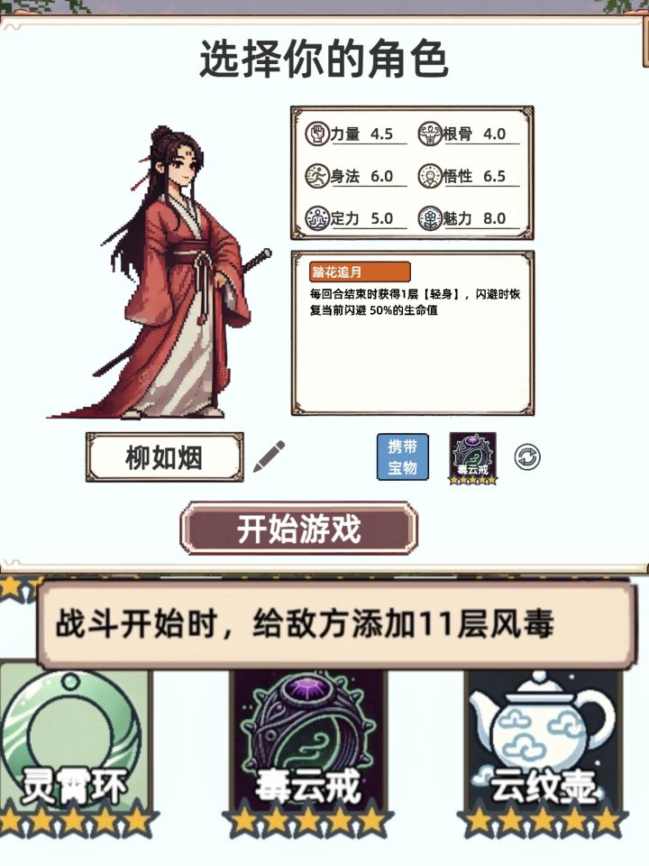 角色:目前解锁了的都玩过,单次最大承伤限制为40%最大血量那个最适合玩毒,没有的话选其他人也能用。