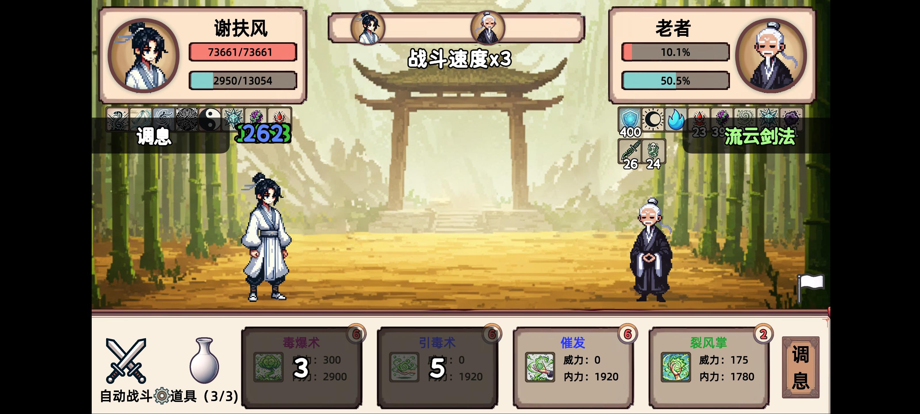 萌新也是第一次打,配的不对,宝物也不对,应该全加血带加血宝物,这货爆发太高了,到这层完全看二刀能不能秒(加上广告起来其实是三下),招式我挖掘的少最后一个技能是没用的,想了几个小时有没有机制能继续过关。降攻35%不行,出招大概是比他快的时候一人一下,比他慢一点是他二我一,考虑守御的话可以用回复加速+60%每回合衰减的组合(其他关都可以用)得支撑到速度比他快才能一人一下。另外就是打进度条,每次自己行动